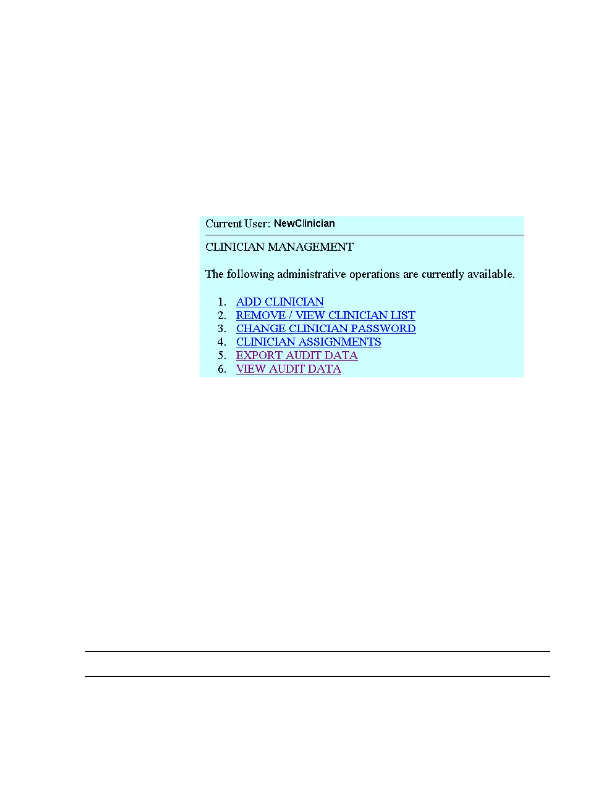 • Administrator: enable this checkbox if clinician is to be a administrator