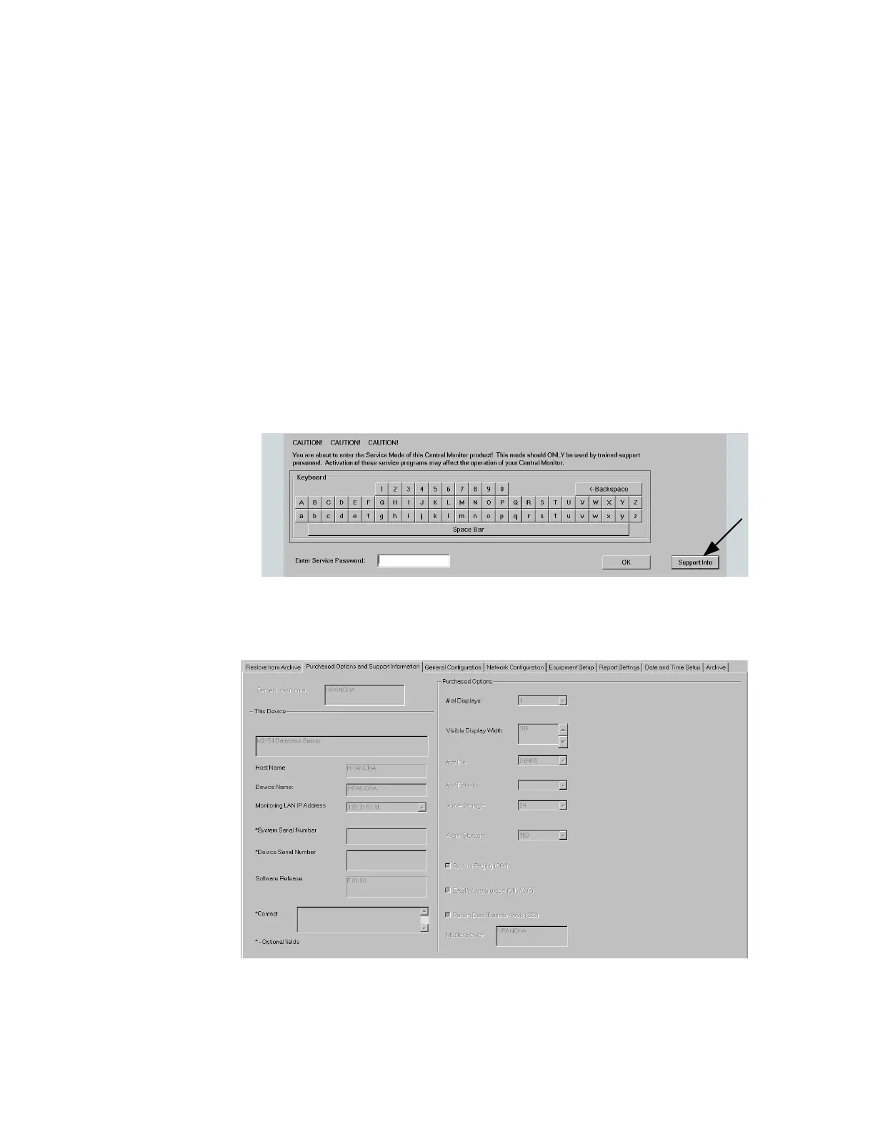 Figure 7-6 Service Password Window Showing Support Info Button