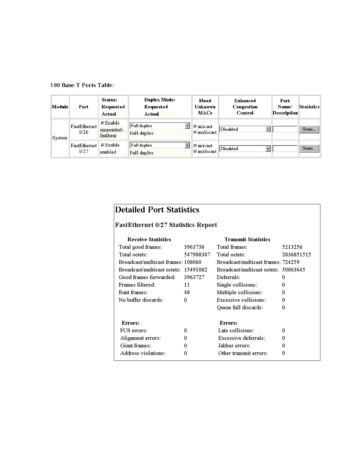 Clicking on Stats... in the Statistics column of a port brings up a Detailed Port Statistics