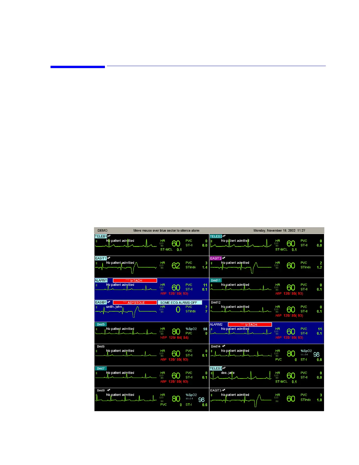 Patient Sectors in alarm are also highlighted in color for immediate recognition of alarm