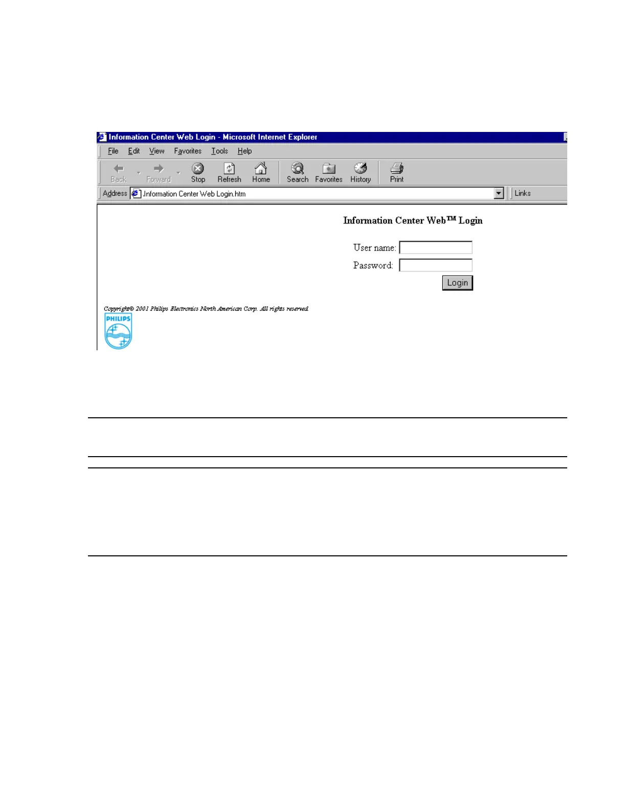 Figure 1-13 Login Window for Information Center Web