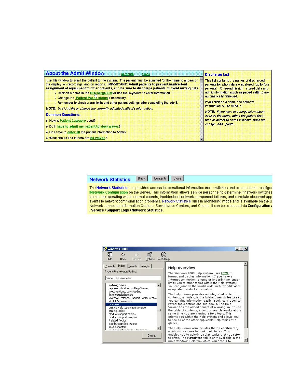 and configuration procedures. As with clinical user help, a Help button is provided in the