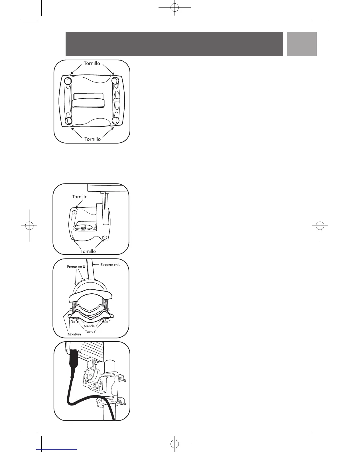 5. Fijar el soporte en L al soporte de pared/mástil, utilizando
