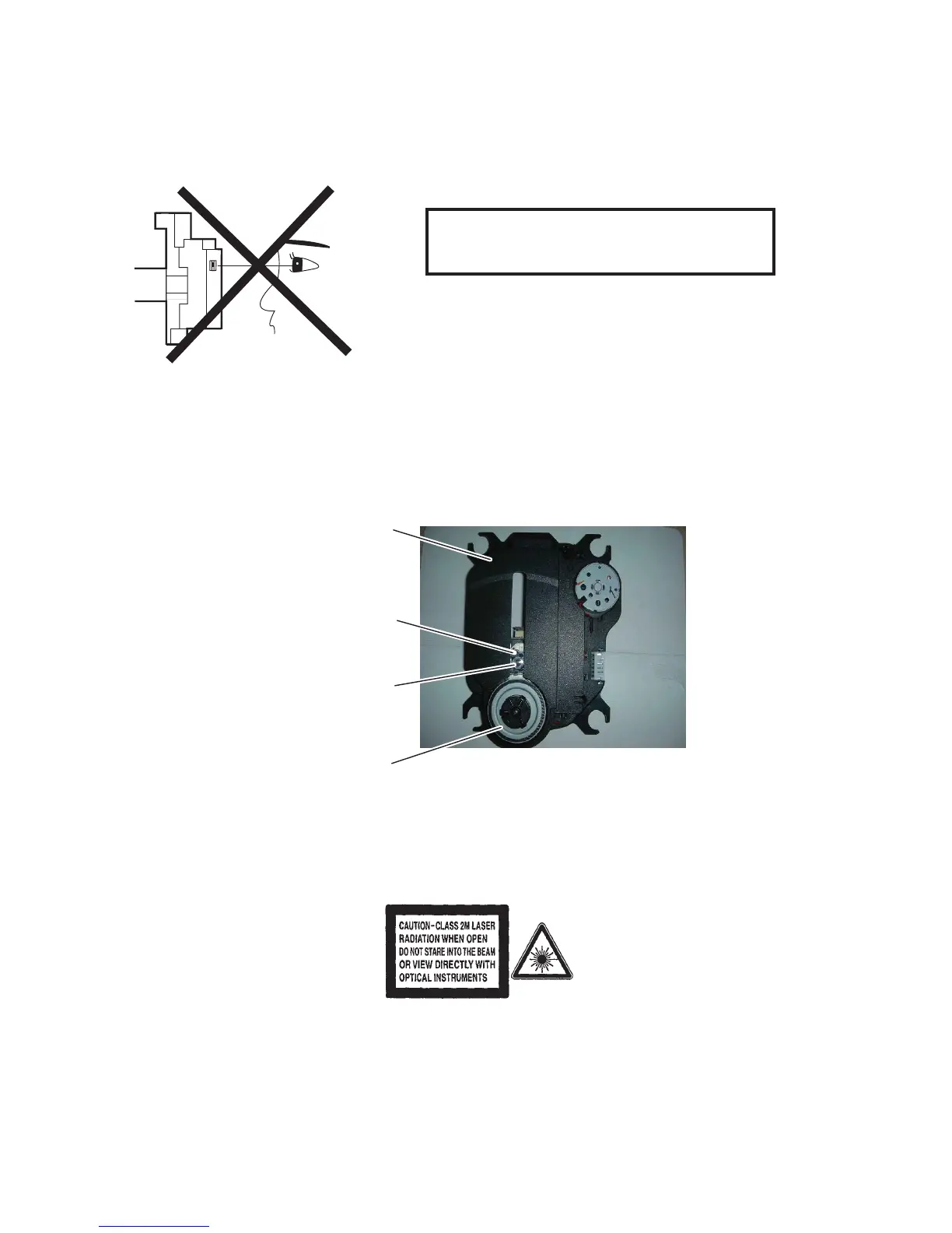 your eyes at least 30 cm away from the pickup lens when the diode is turned on. Do not look directly at the laser