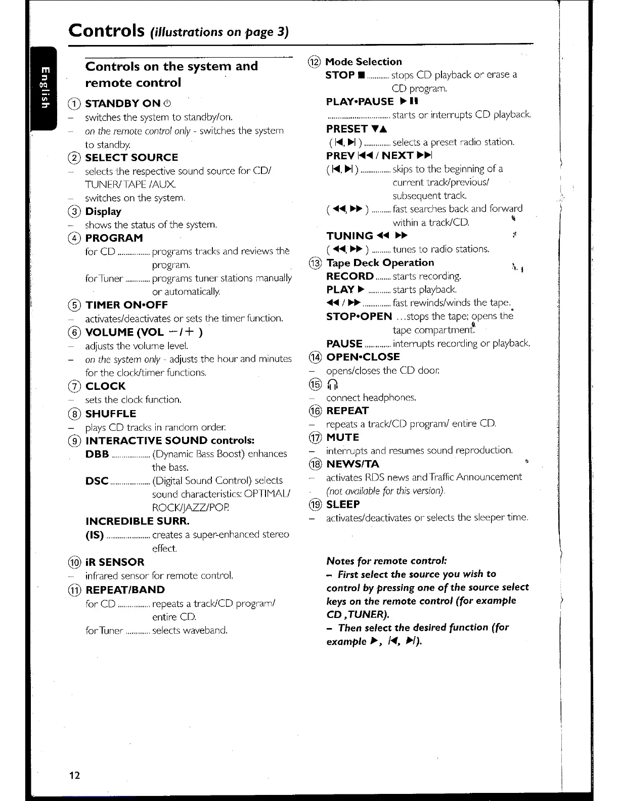 Philips MC 105 - Controls on the System and Remote Control