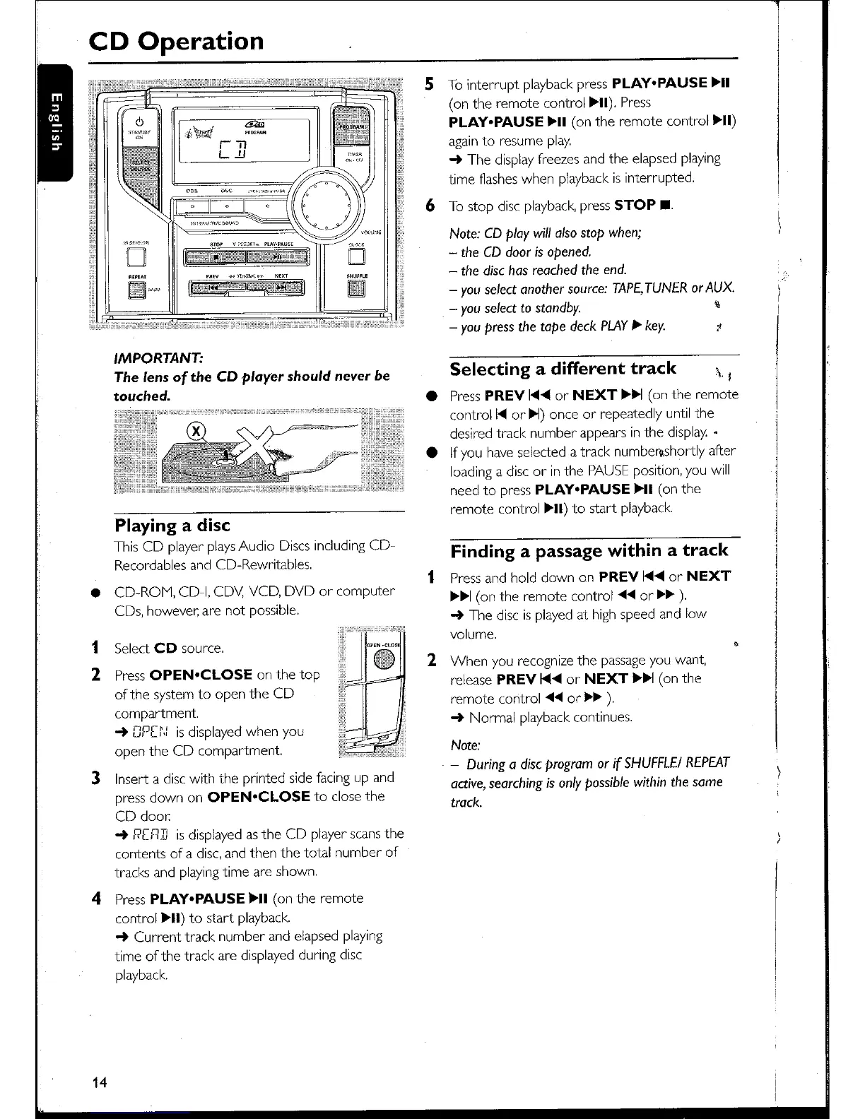 Philips MC 105 - Playing a Disc; Selecting Tracks and Passages