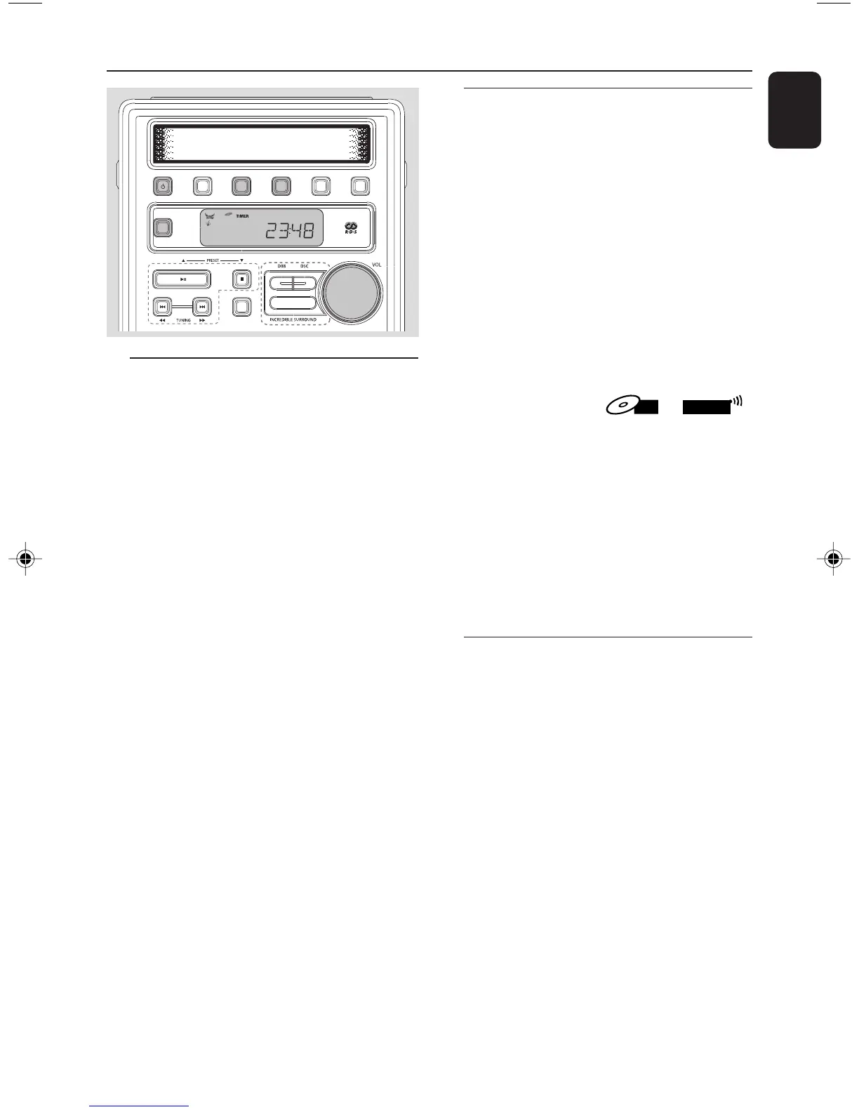 whereby the CD or TUNER is switched on at a