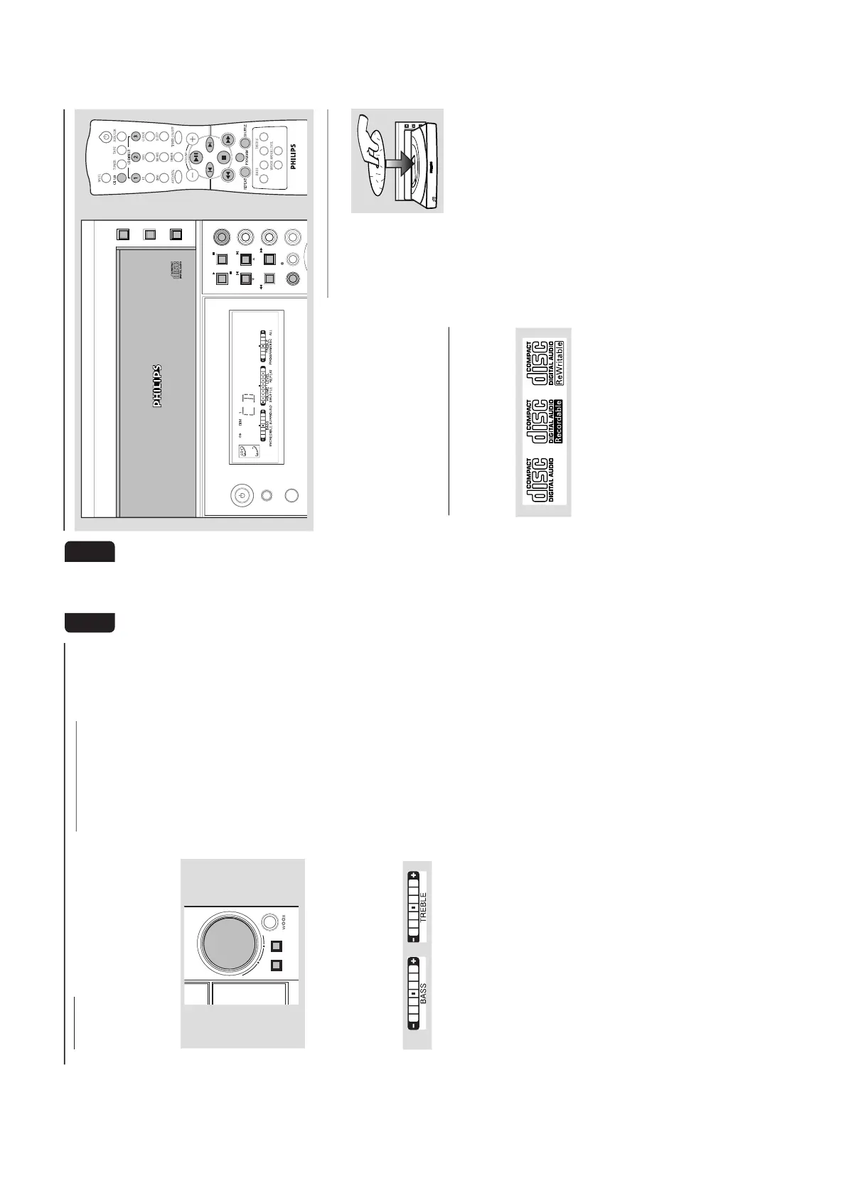 ● Press BASS +/- or TREBLE +/- on the