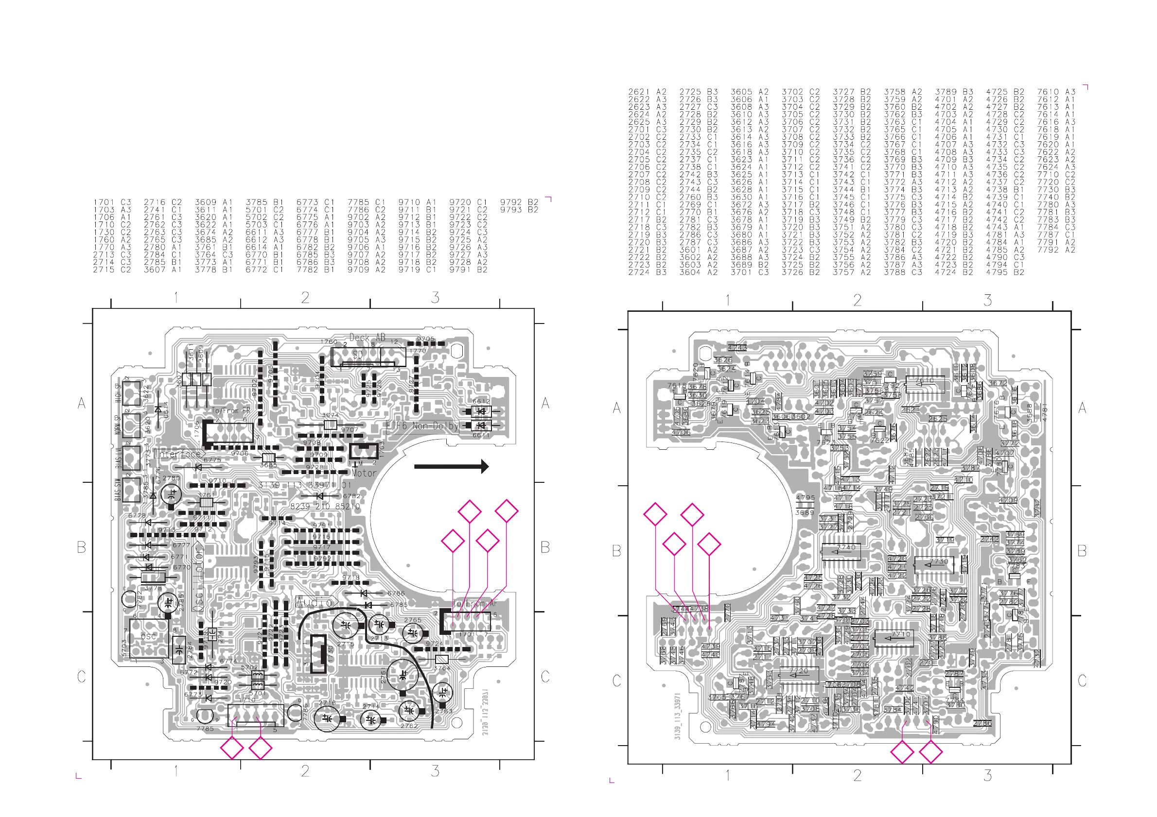 This assembly drawing shows all possible versions. For components used in a spsecific version see schematic diagram and respective parts lists.
