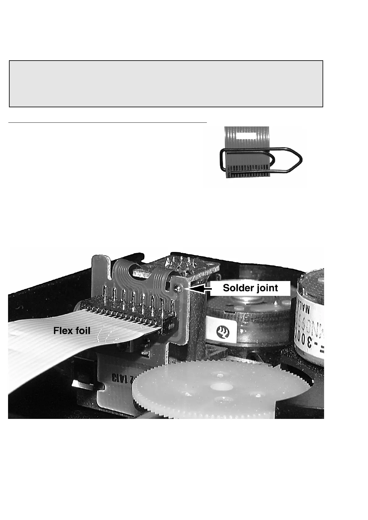 2. Connect paperclip to CD drive flexfoil to short-circuit flexfoil (fig.1)