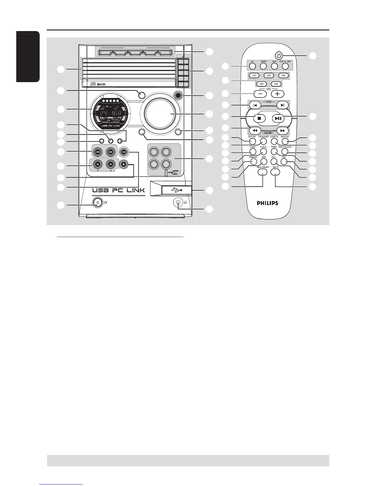– USB PC LINK: starts/pauses playback.
