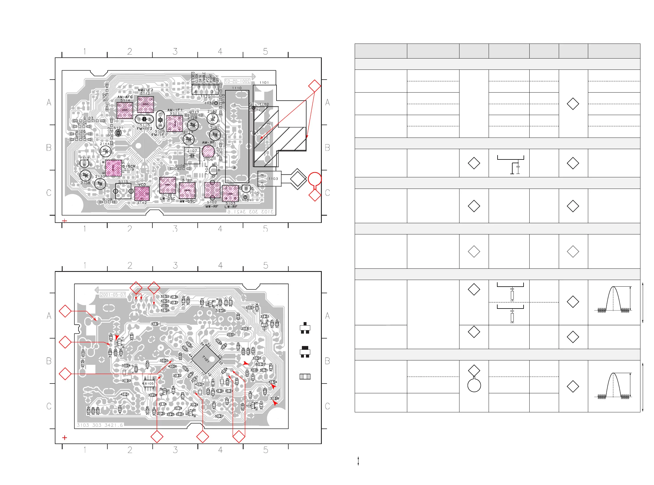 TUNER ADJUSTMENT TABLE