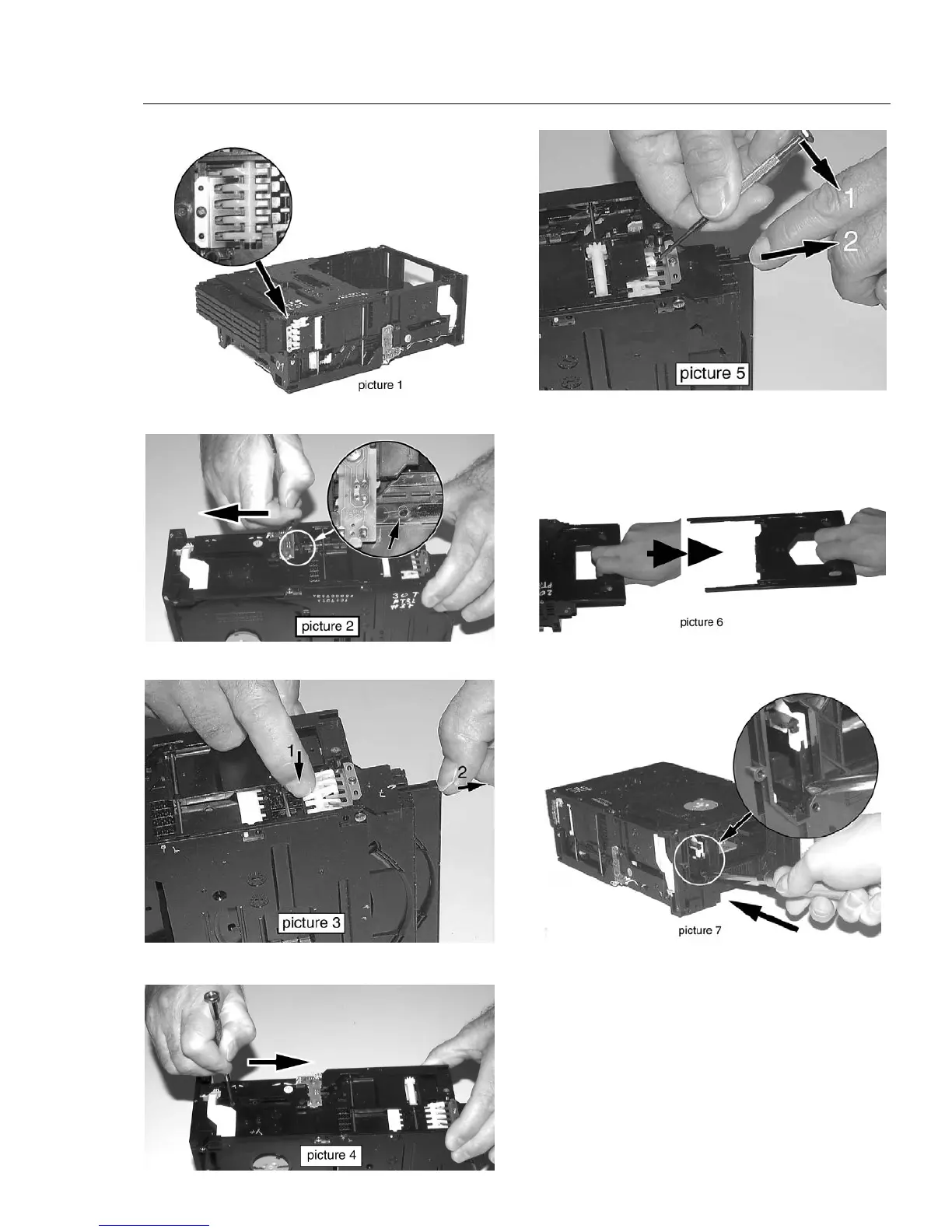 Release snap as shown in picture 5 and pull tray out.
