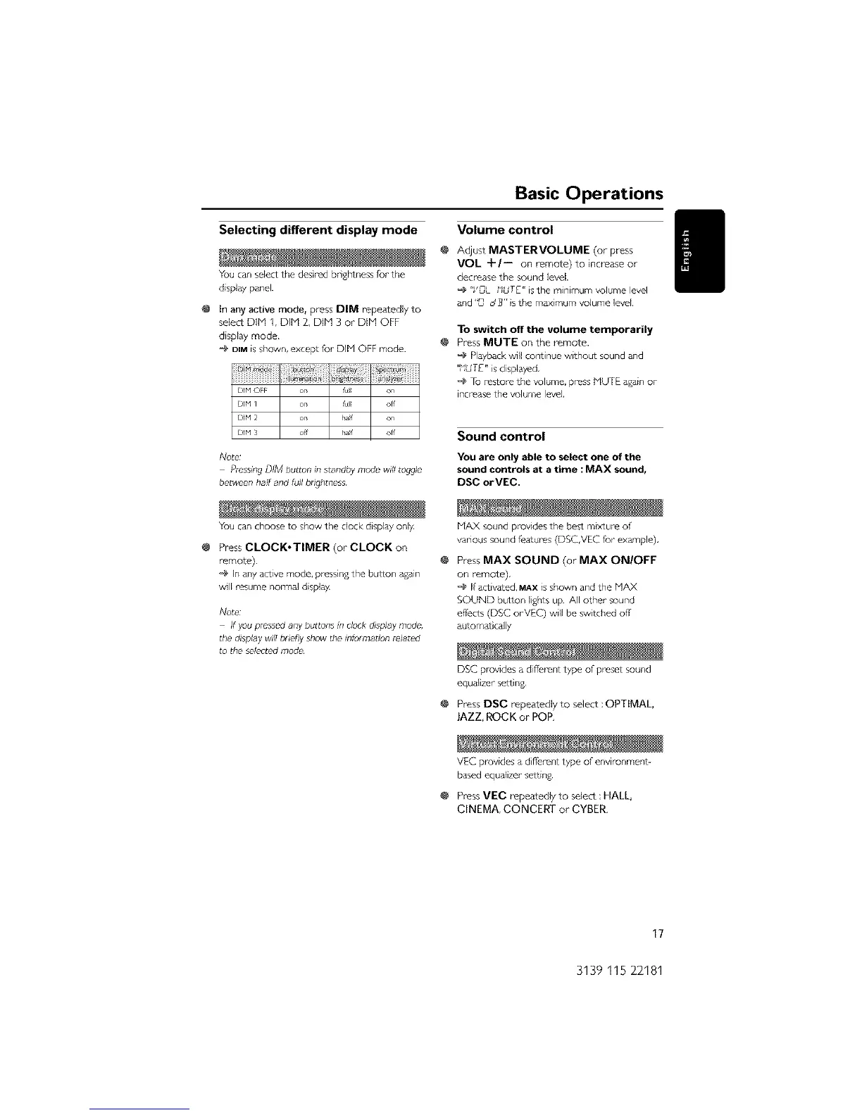 select DIM 1, DiM 2, DIM 3 or DIM OFF