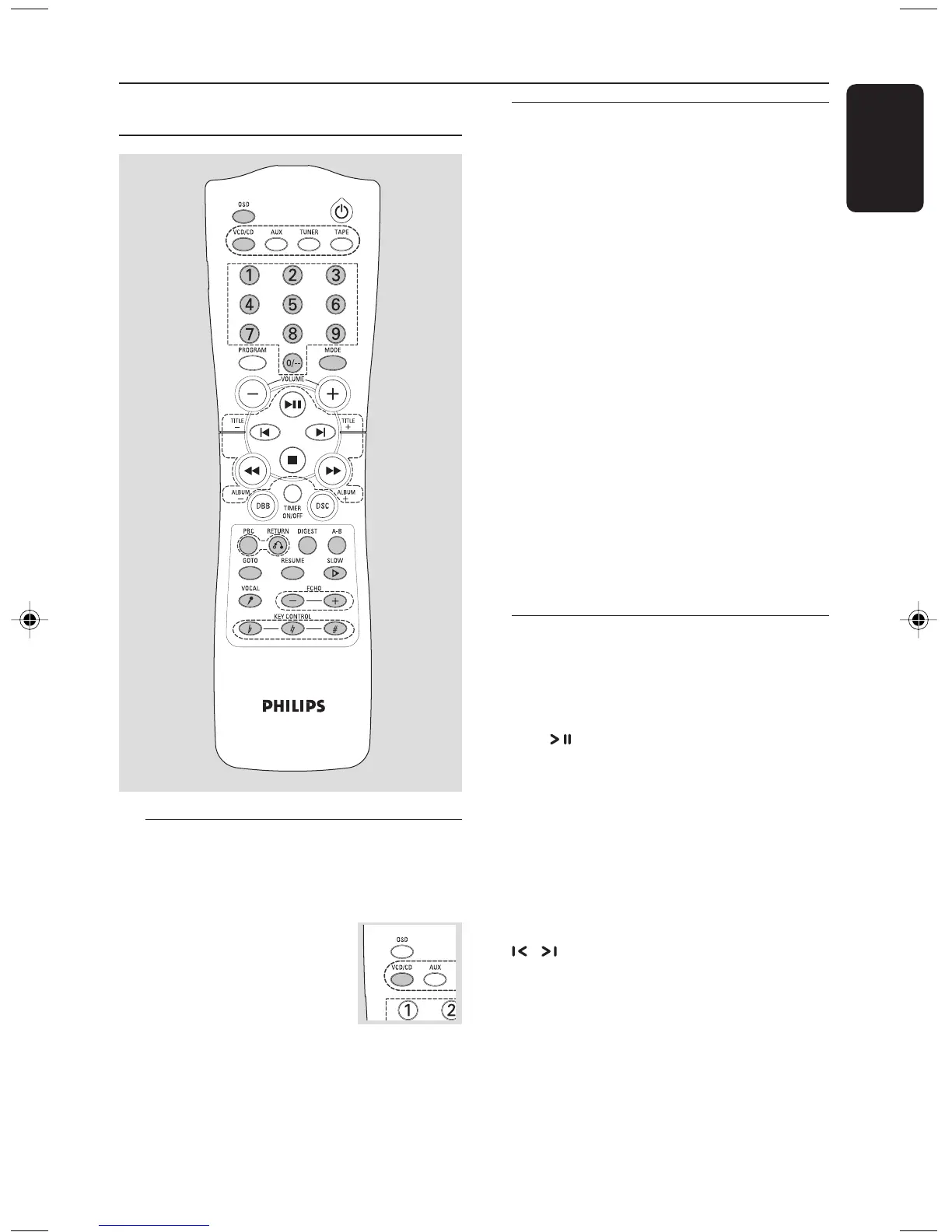 ● Press and hold VCD/ CD on