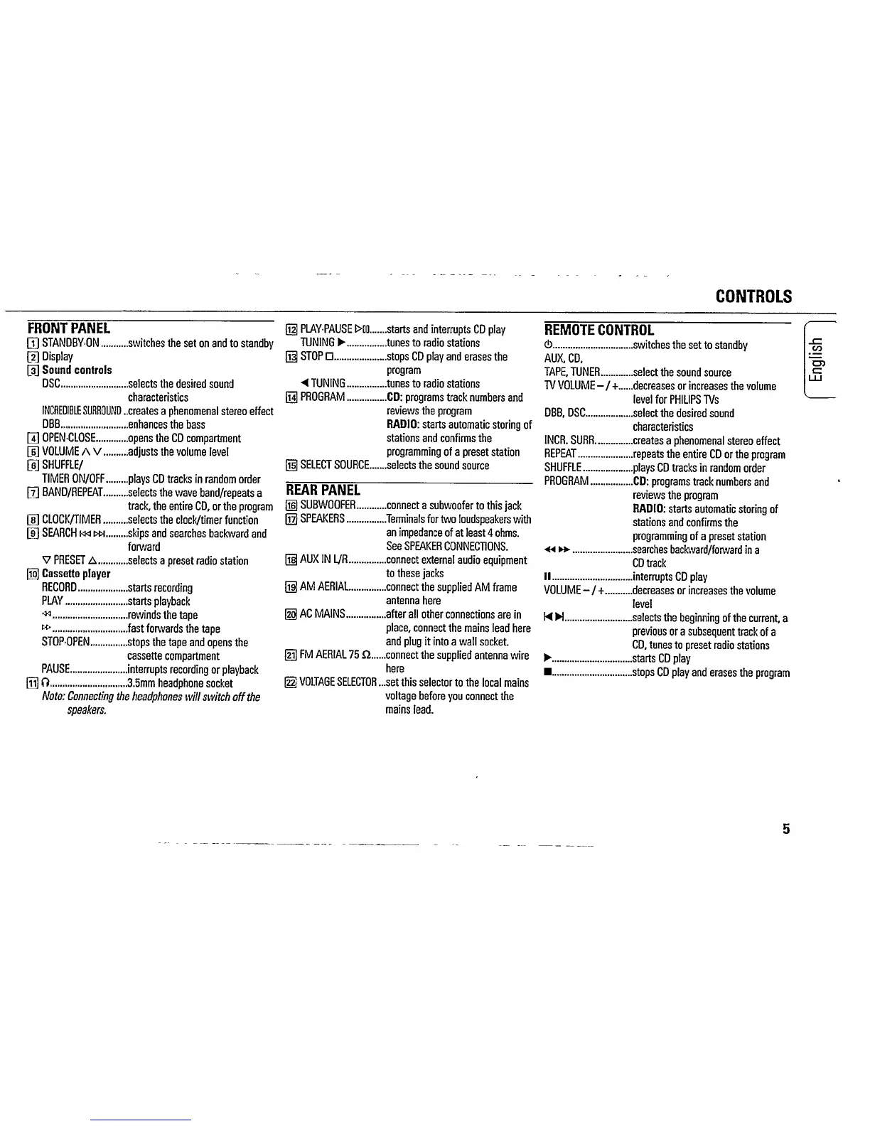 Philips MC115/02 - Front Panel; Rear Panel; Remote Control