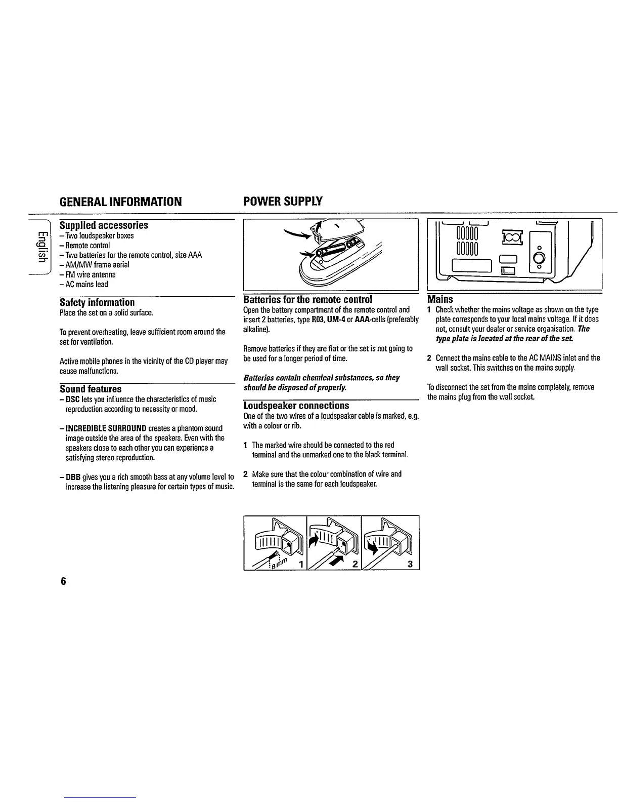 Philips MC115/02 - General Information; Power Supply; Supplied Accessories; Safety Information