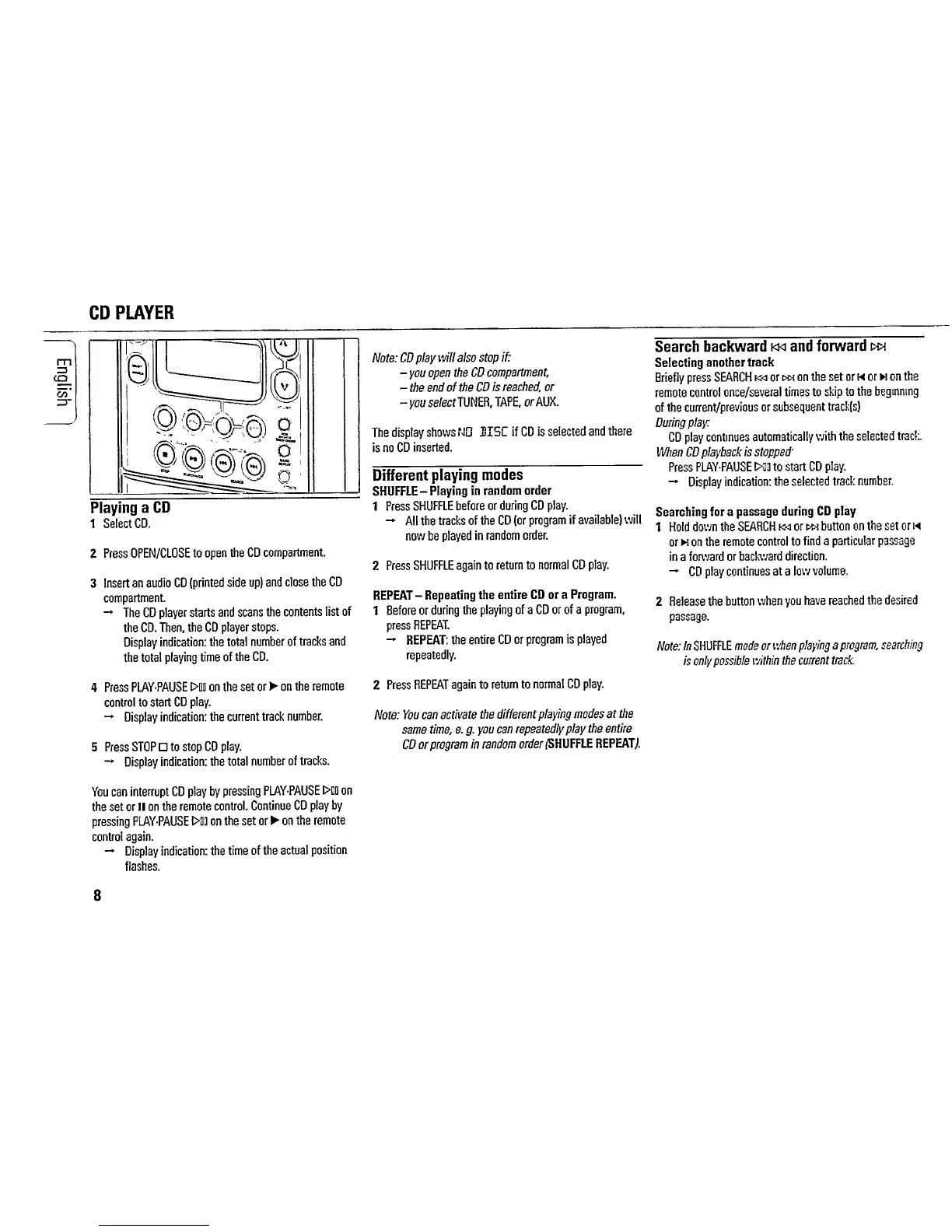 Philips MC115/02 - CD Player; Playing a CD; Different Playing Modes; Search Backward and Forward