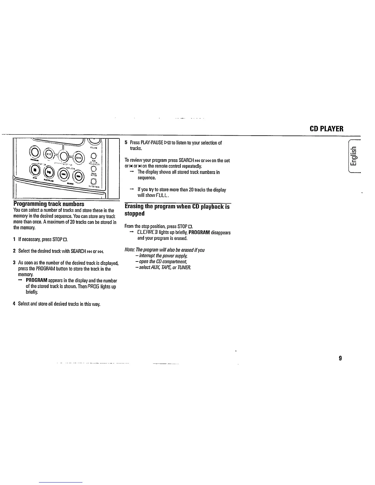 Philips MC115/02 - Programming Track Numbers; Erasing the Program When CD Playback Is Stopped