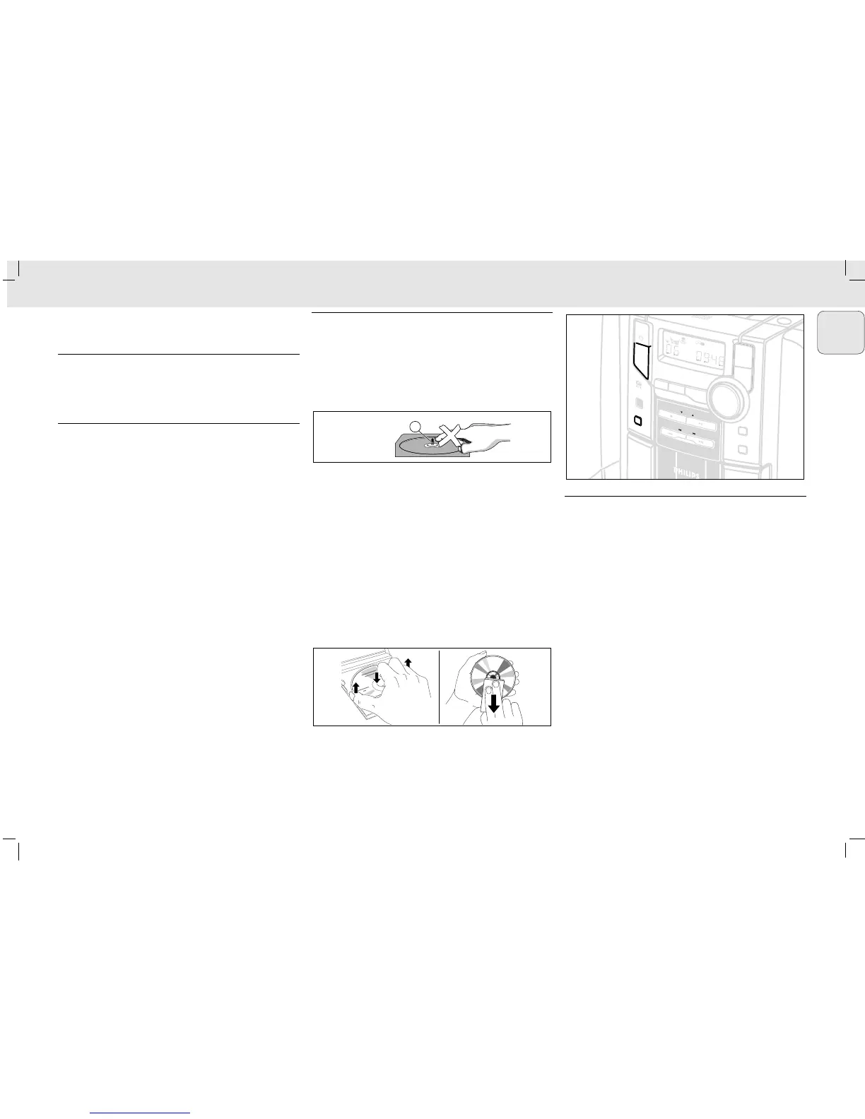 • To take a CD out of its box, press the centre spindle