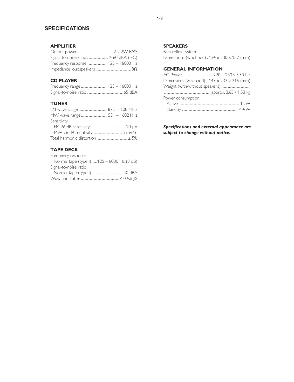 Normal tape (type I) .................................... 40 dBA