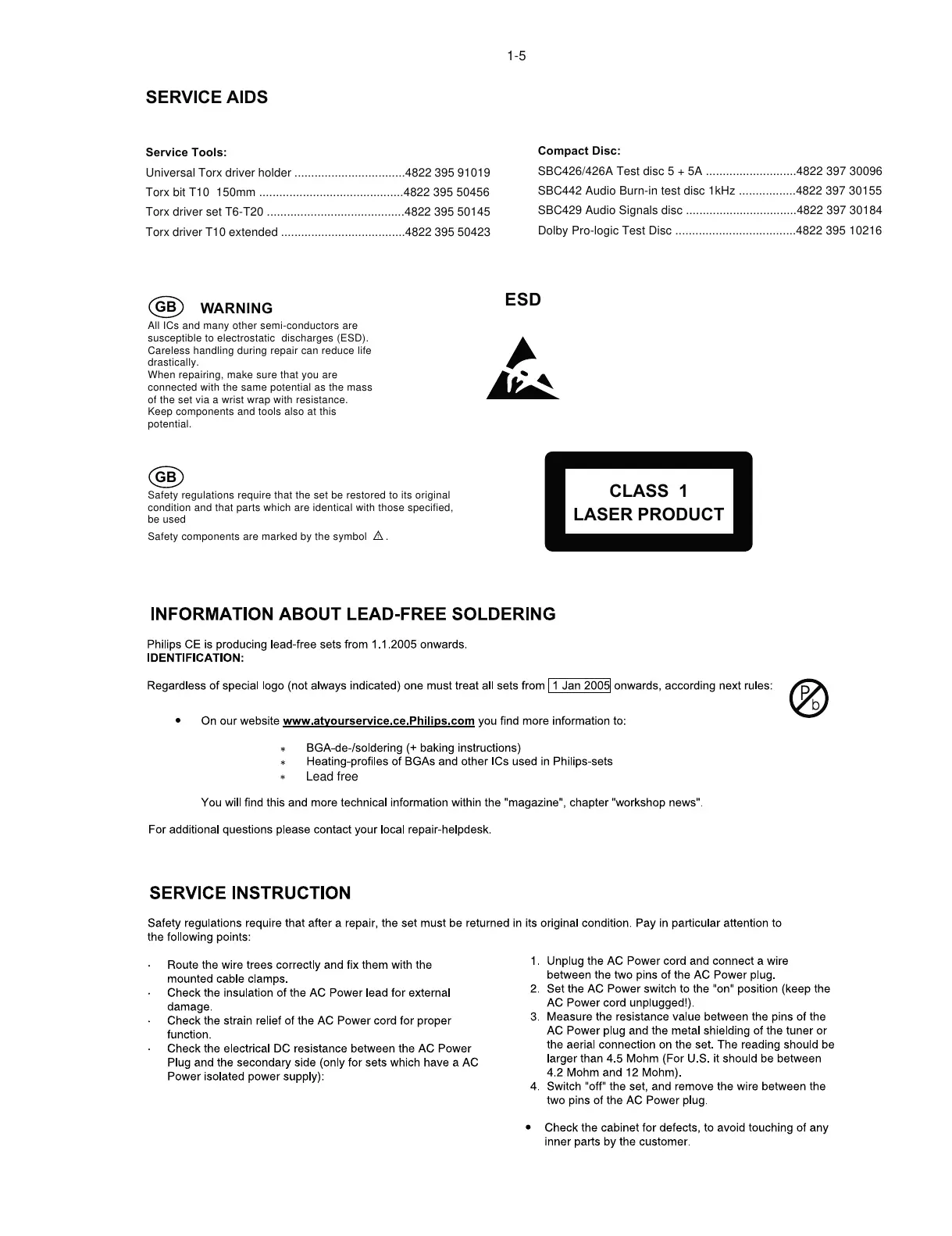 SBC426/426A Test disc 5 + 5A ...........................4822 397 30096