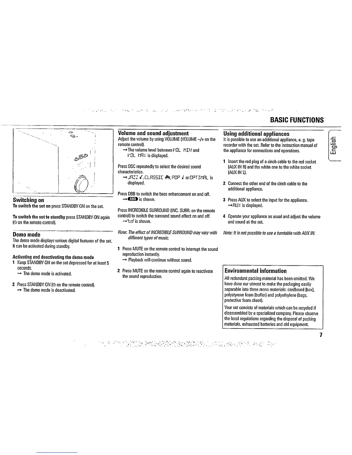 Philips MC175 - Basic Functions; Switching the Unit On and Standby; Volume and Sound Control; Connecting External Appliances