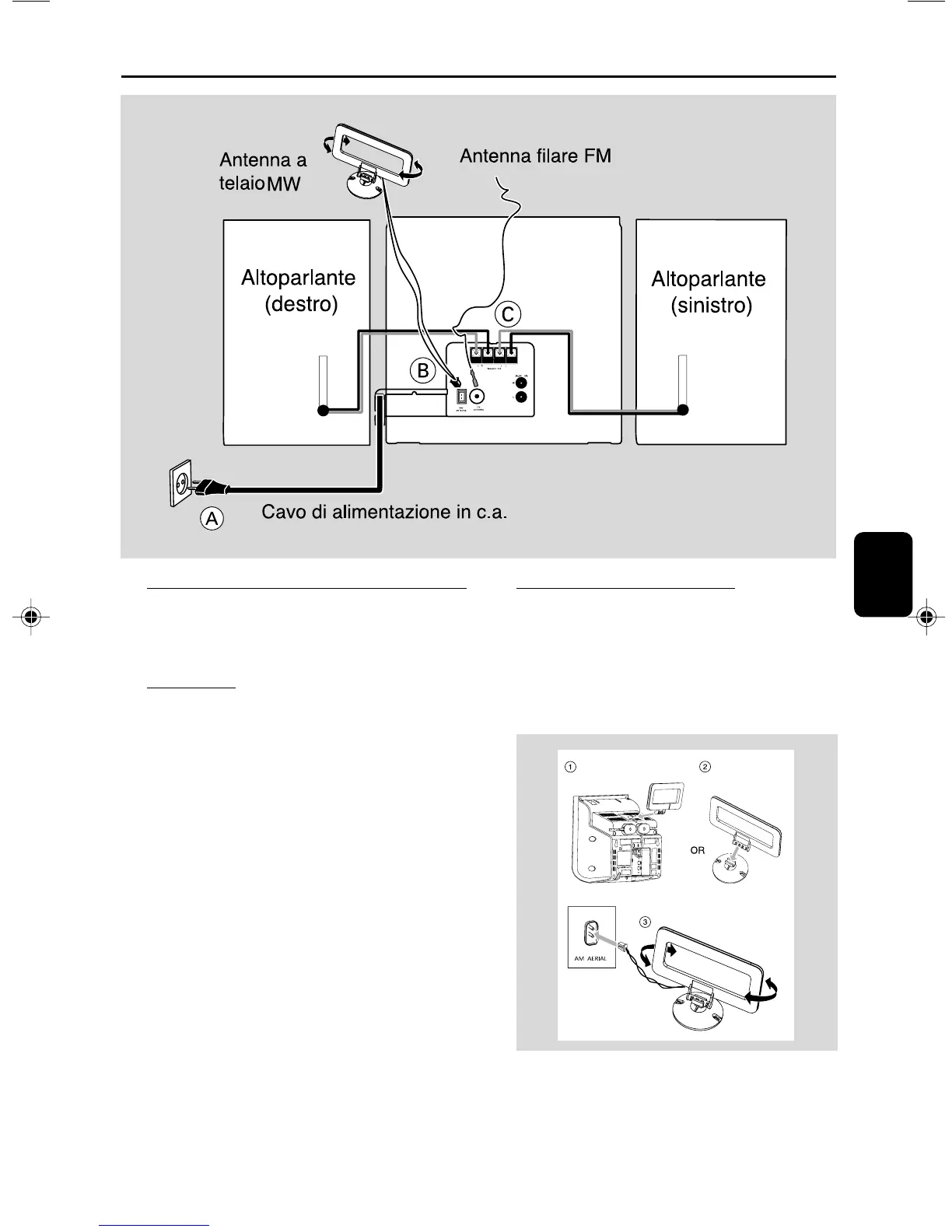 Collegare l’antenna a telaio AM e l’antenna FM