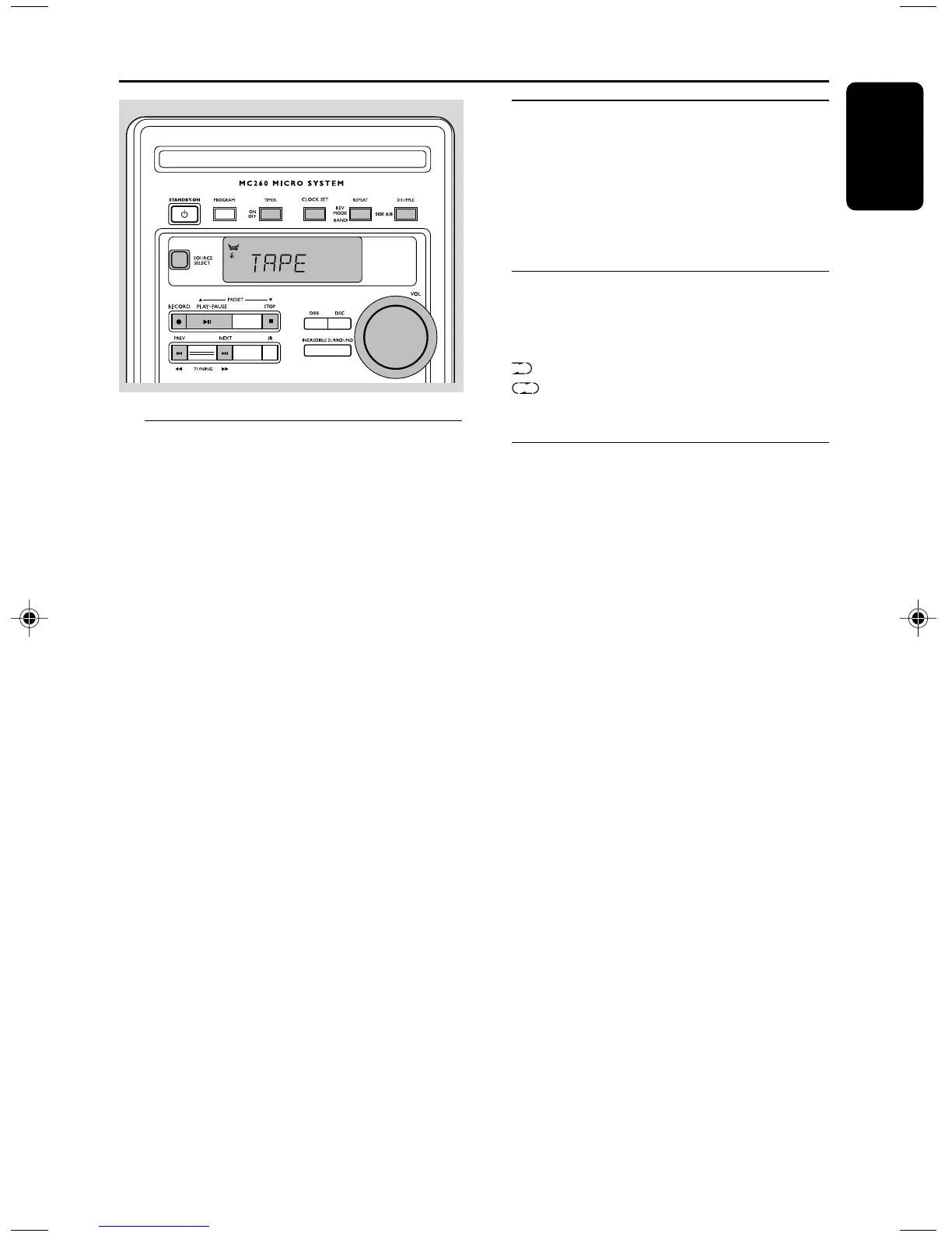 1 Select TAPE source.