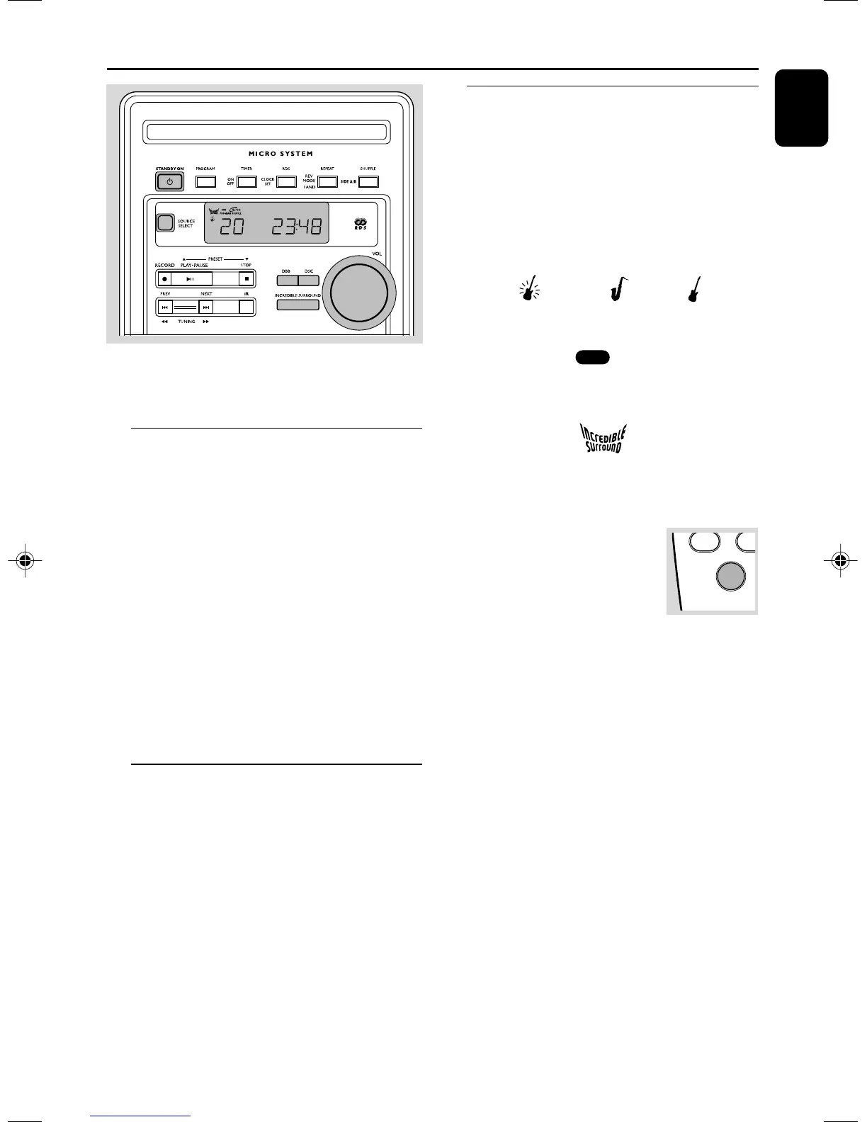 ● Press CD, TUNER, TAPE or AUX on the