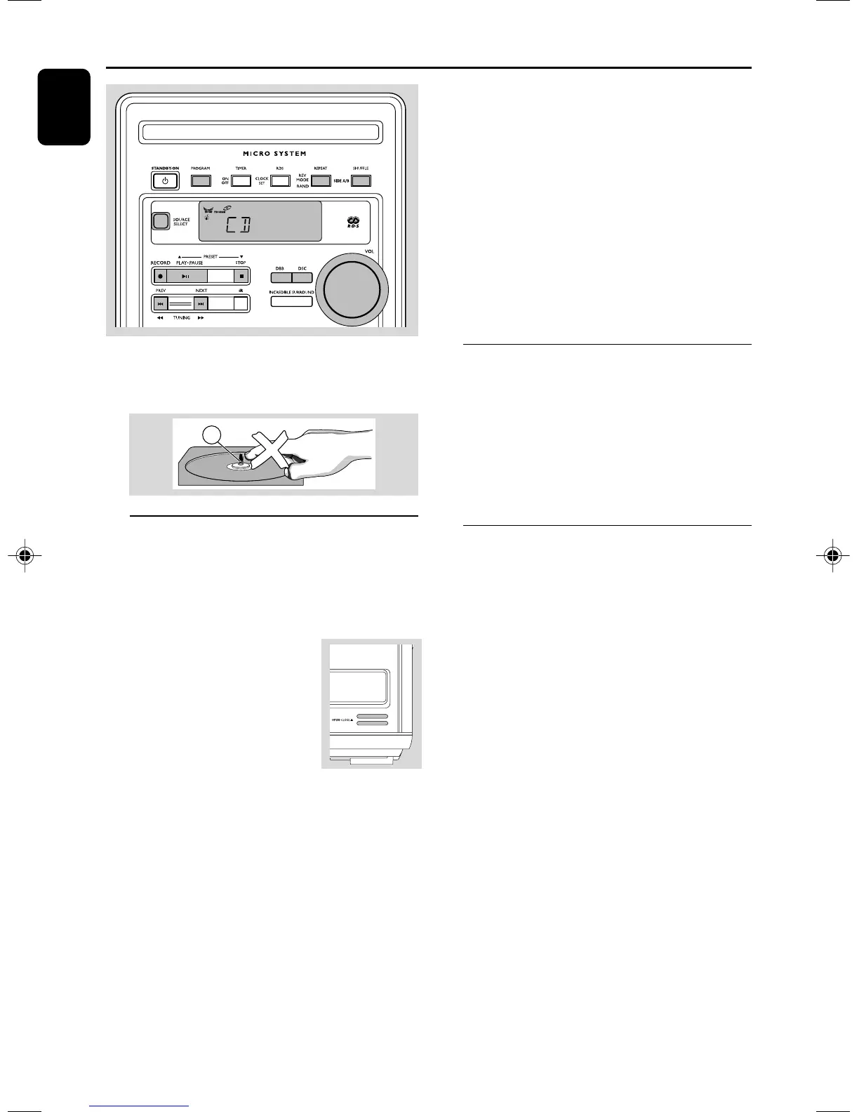 3 Insert a disc with the printed side facing up and