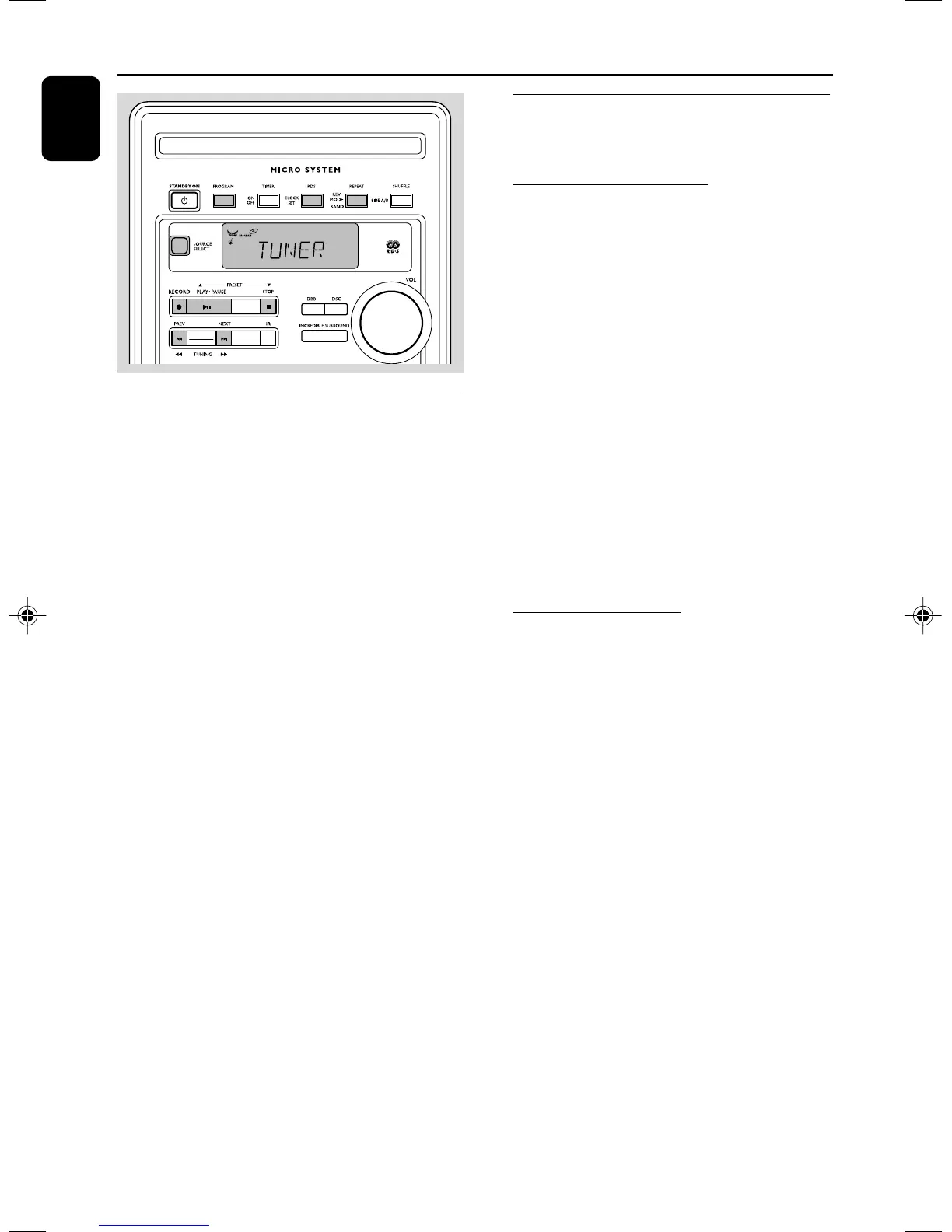 ● To tune to a weak station, press TUNING à