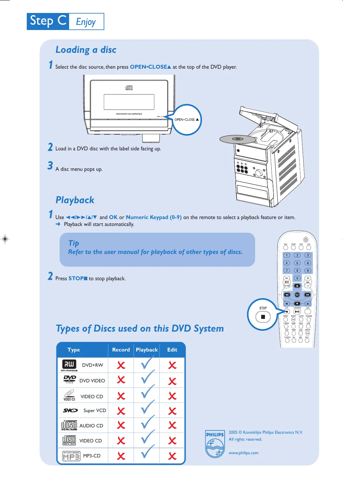 Select the disc source, then press OPEN•CLOSE3 at the top of the DVD player.