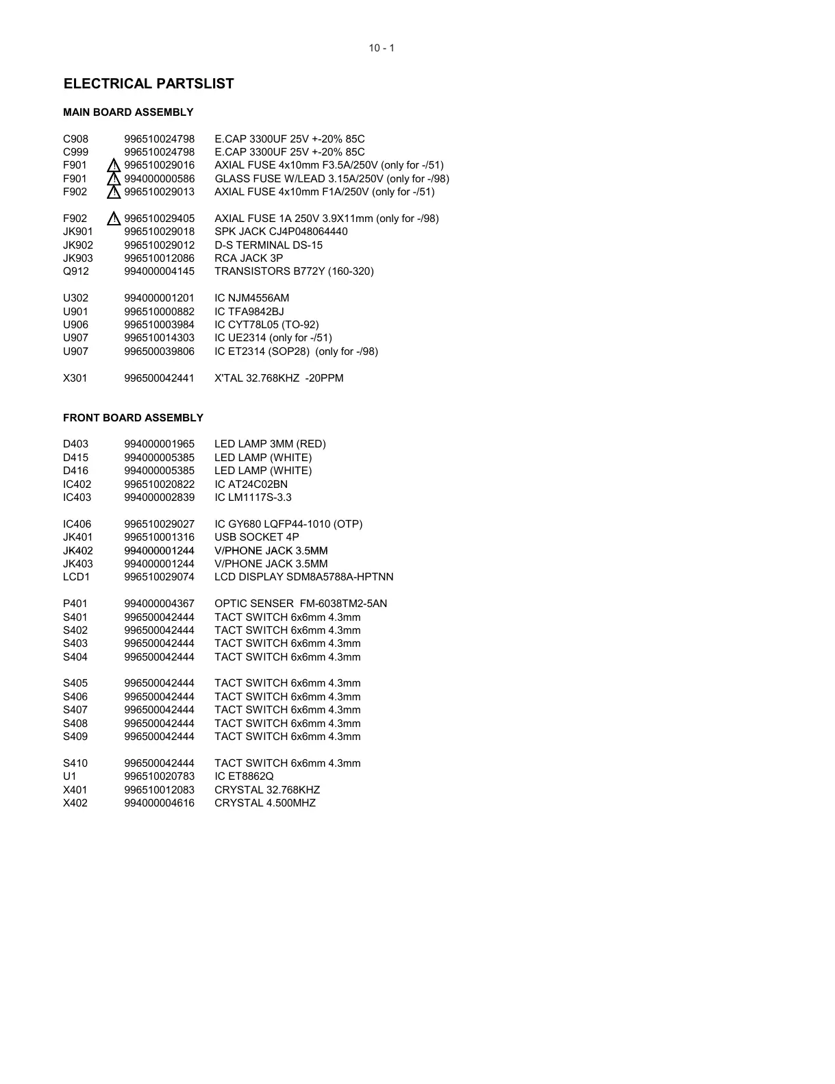 994000000586 GLASS FUSE W/LEAD 3.15A/250V (only for -/98)