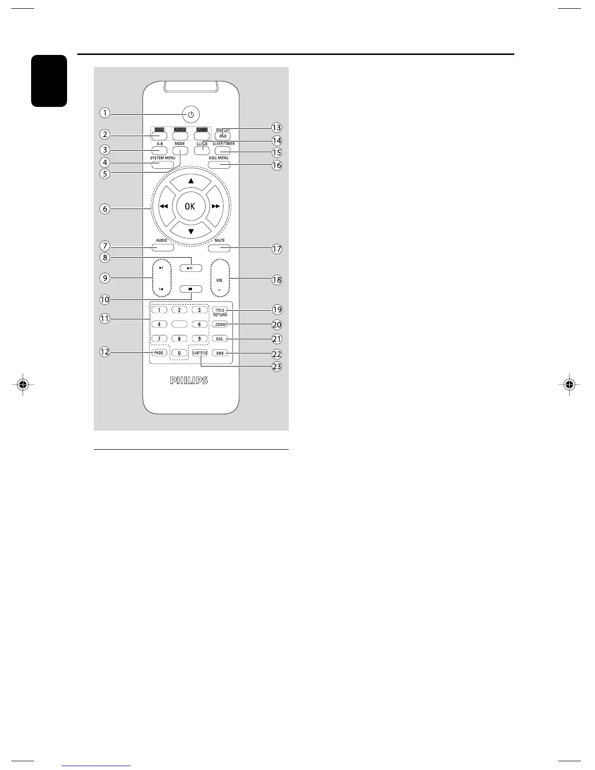 2 SOURCE (DISC/TUNER/AUX1/2/TV)