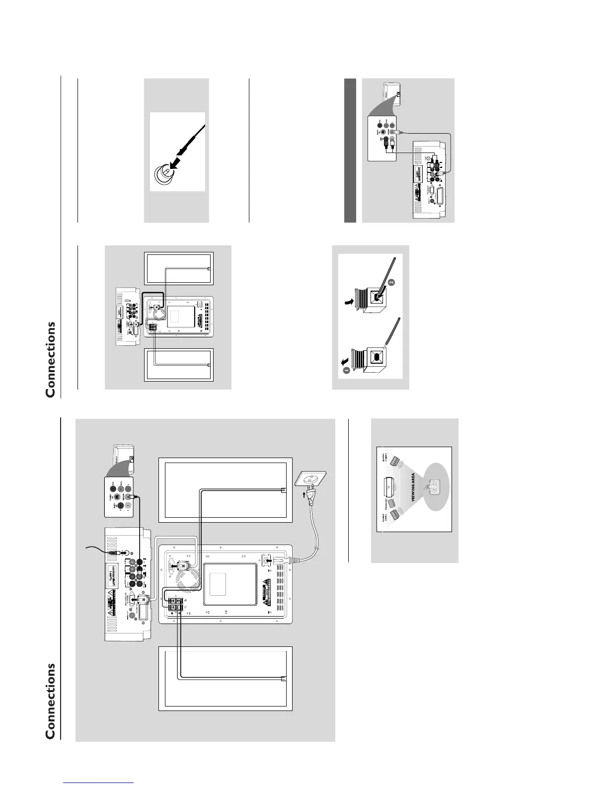 Philips MCD149 - Connection and Controls Overview; Initial Setup and Speaker Connection; Antenna and TV Connection Guide; Important Connection Safety Notes