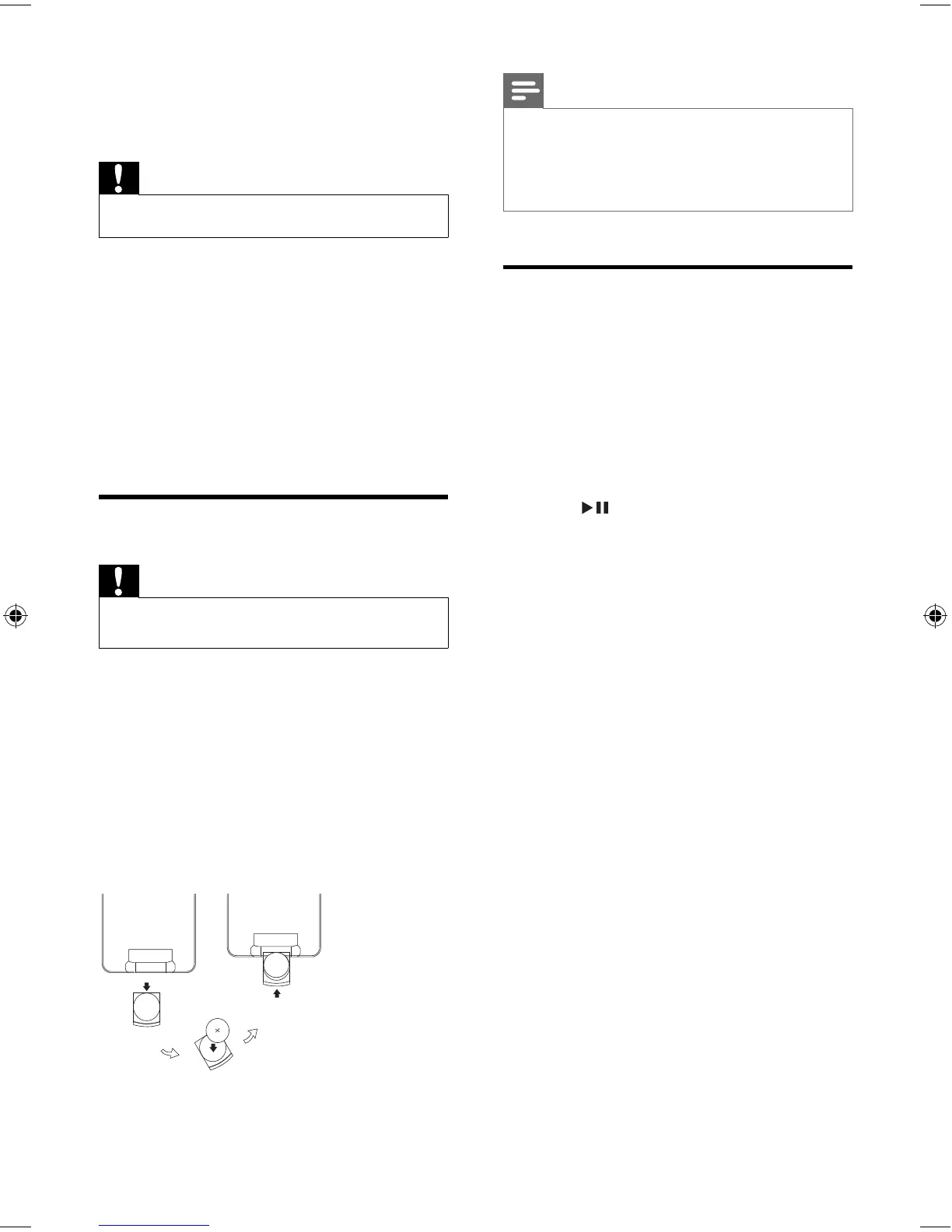 To replace the remote control battery: