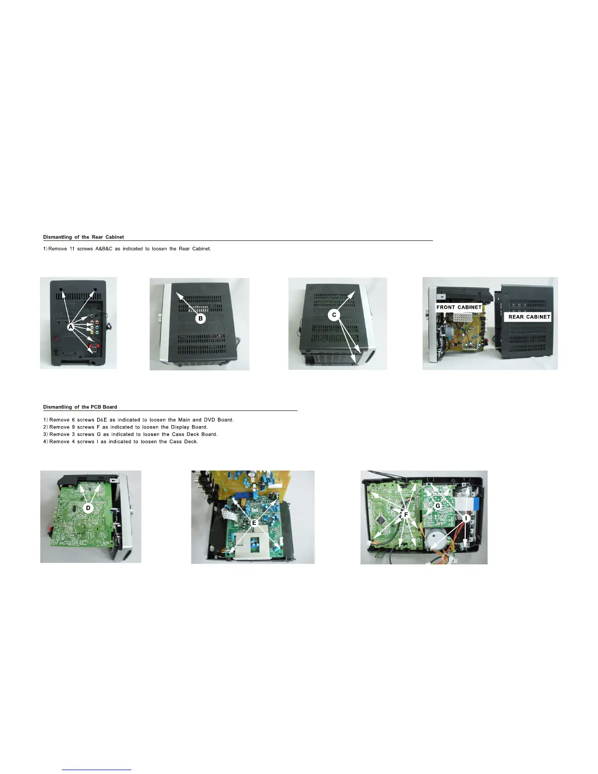 Philips MCD170 - Disassembly and Component Access; Rear Cabinet Removal; PCB Board Removal Steps
