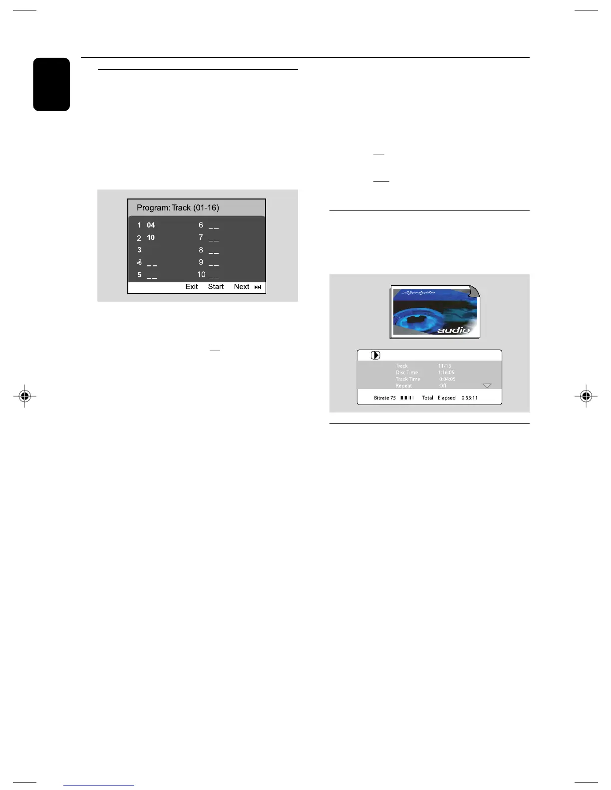 programming menu, select the track/chapter and