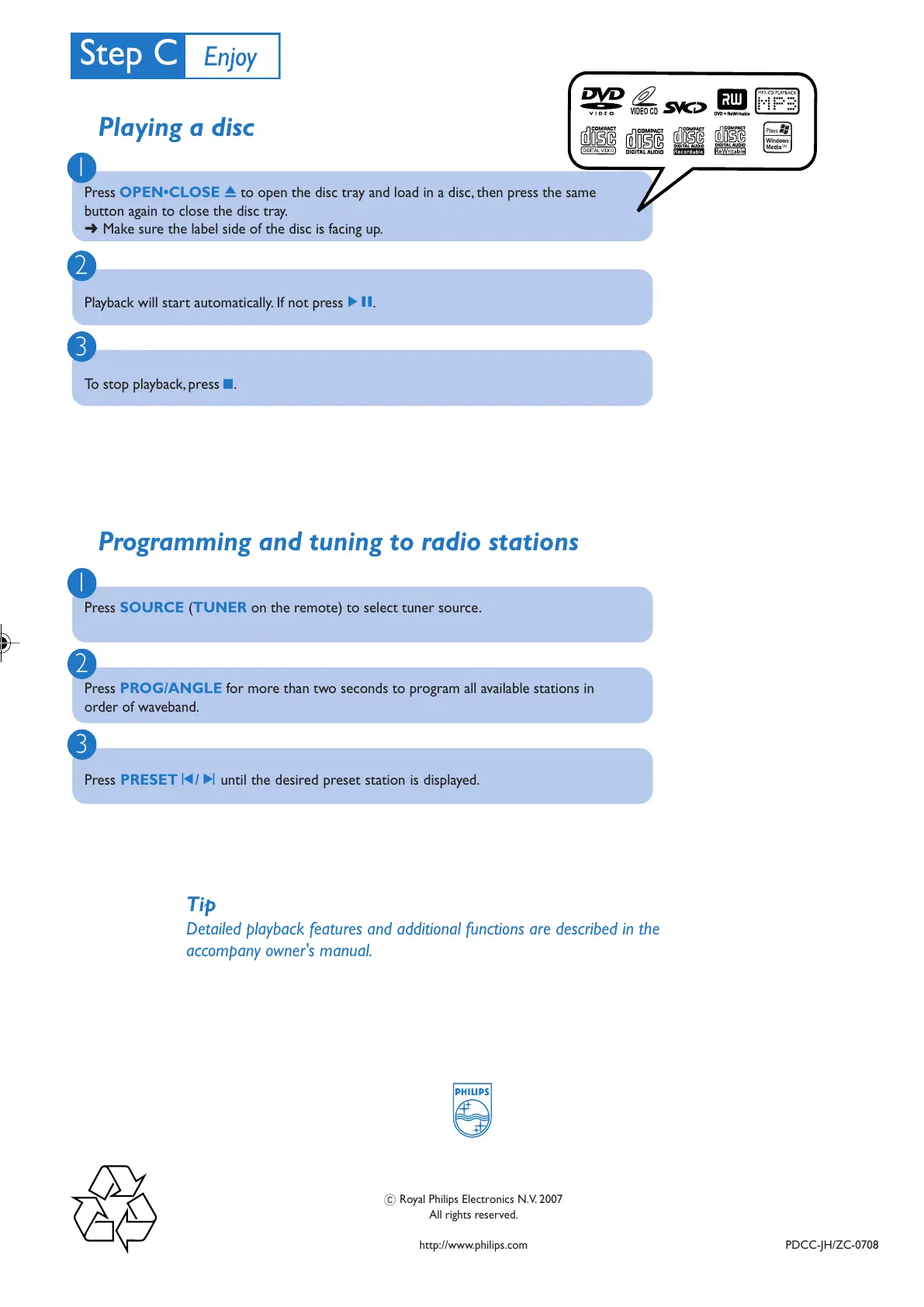 Press OPEN•CLOSE 0 to open the disc tray and load in a disc, then press the same