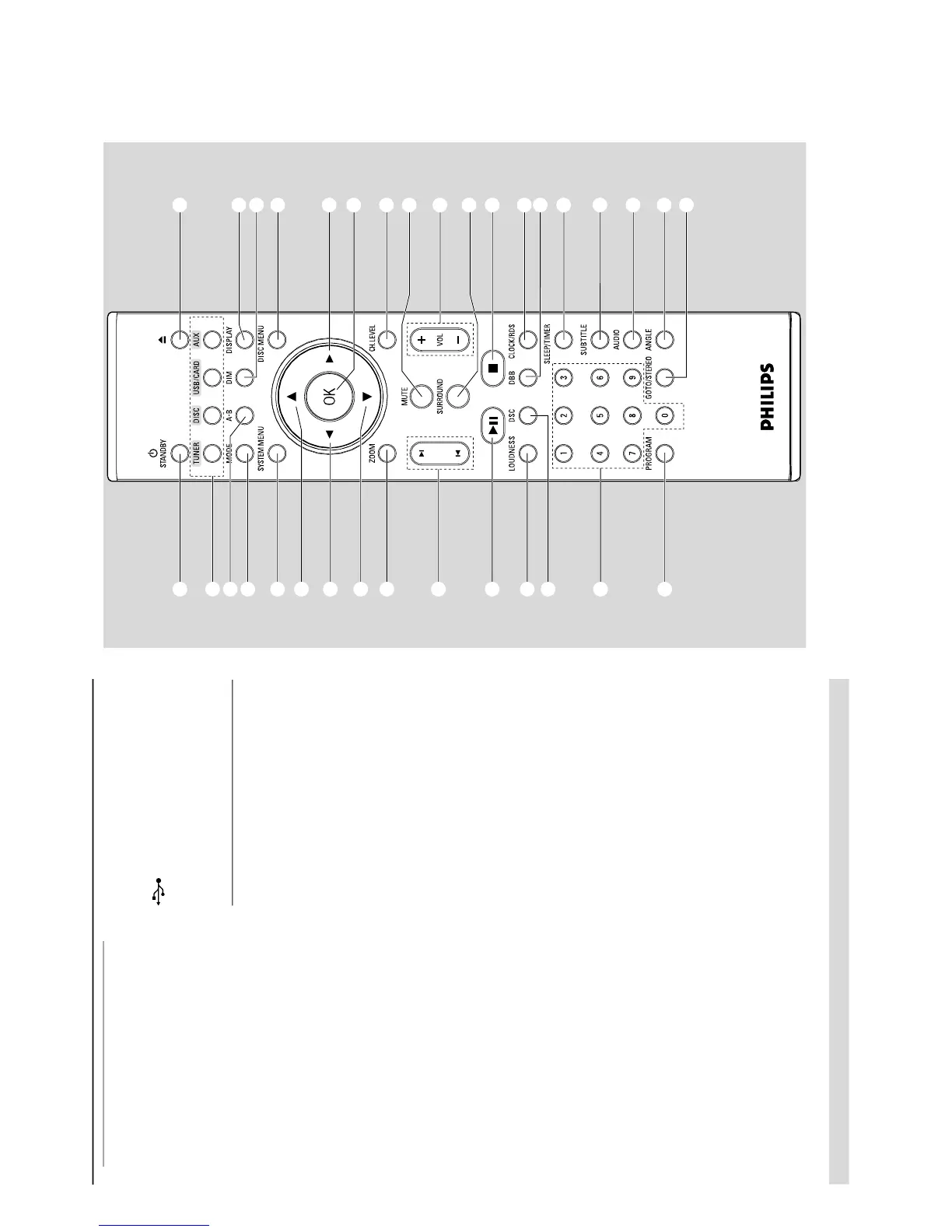 –DVD/VCD/CD/MP3-CD/USB: enters the