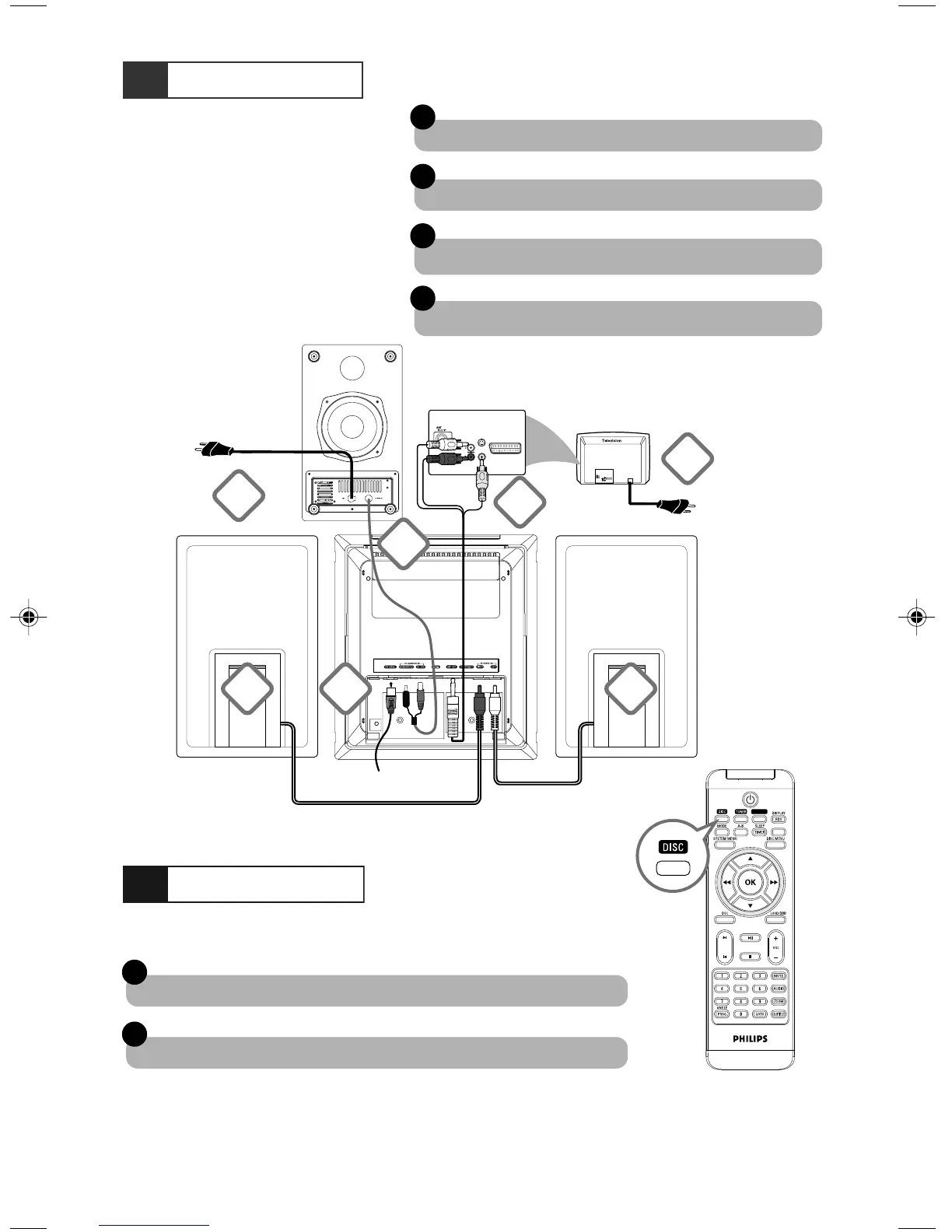 Schließen Sie die Anlage und den Fernseher mit den Netzkabeln an das Stromnetz an.