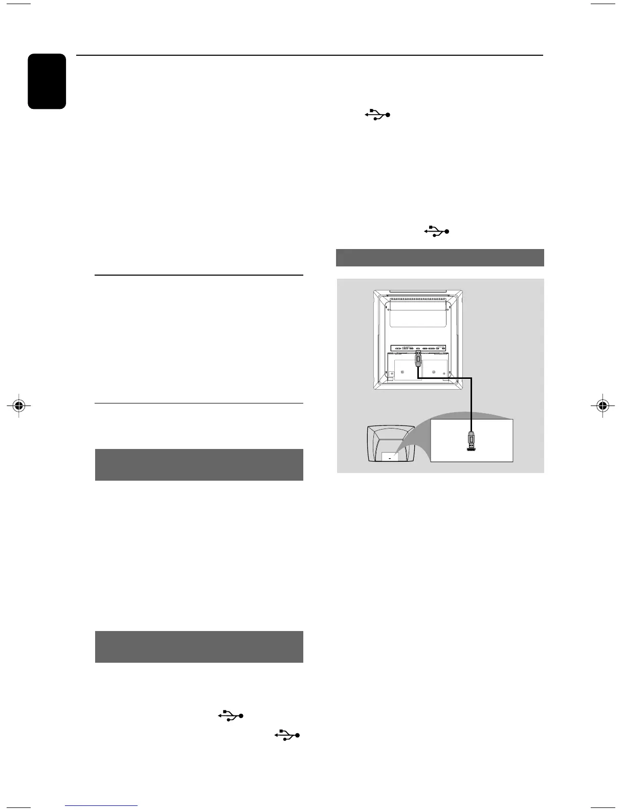 1 Insert one plug of the USB cable (not supplied)