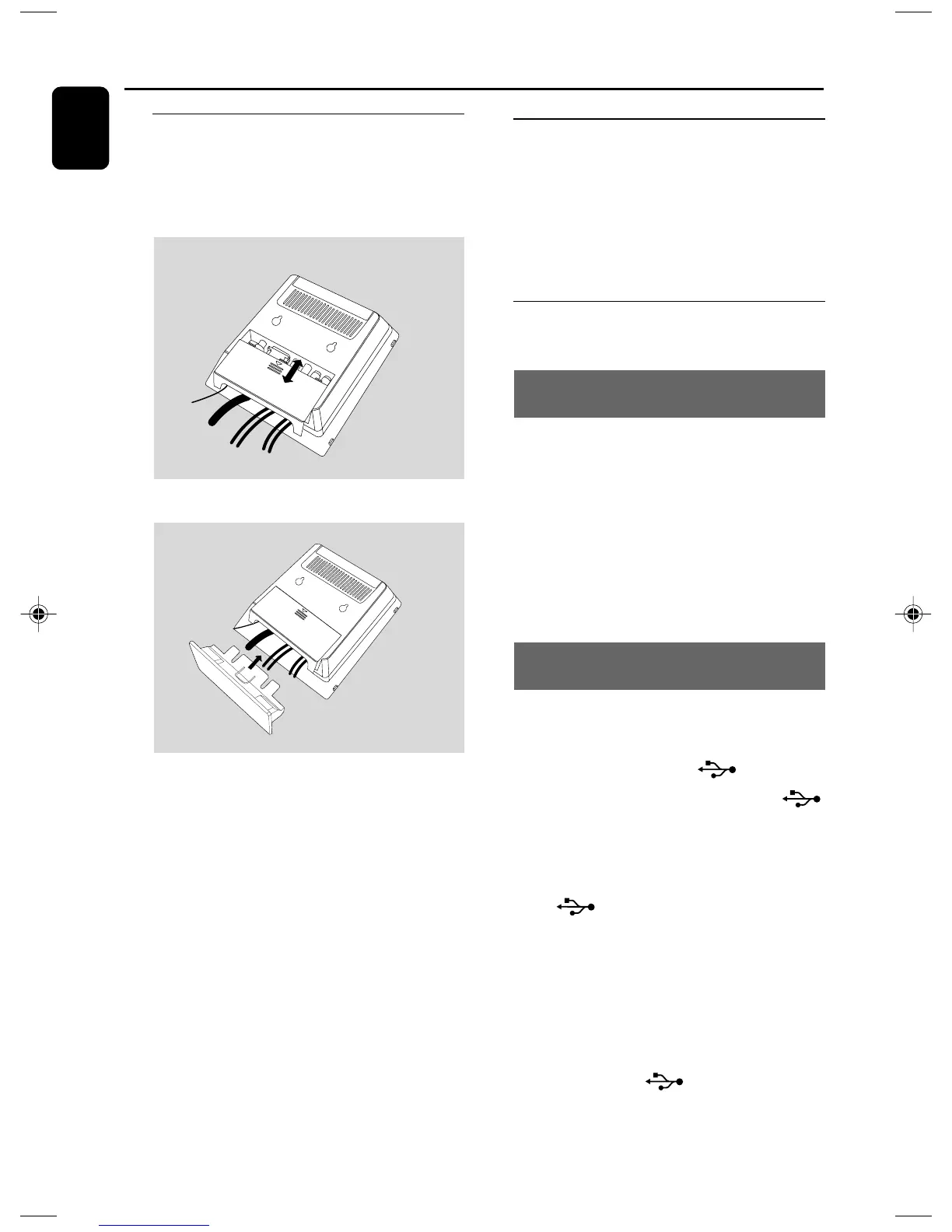 1 Insert one plug of the USB cable (not supplied)
