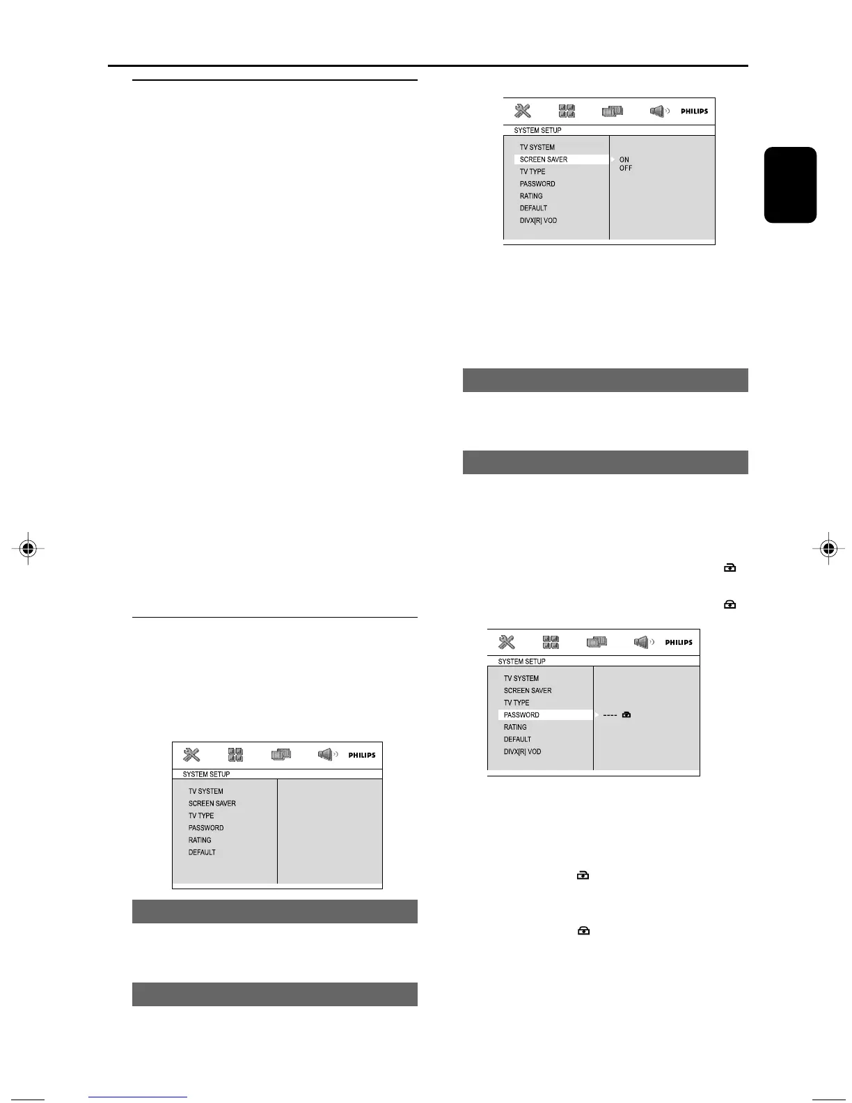 SAVER”, “TV TYPE”, “PASSWORD”, “RATING”,