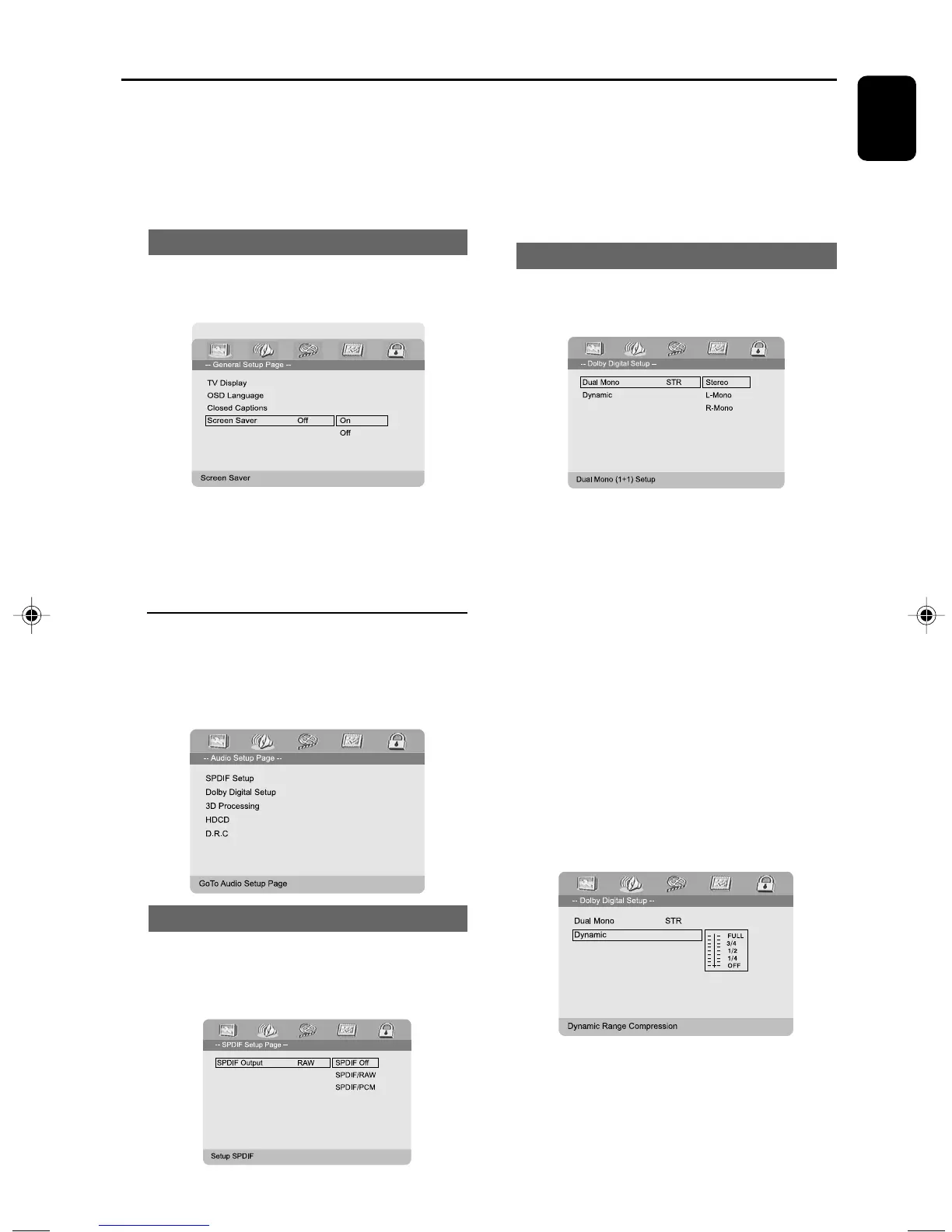 “SPDIF Setup”, “Dolby Digital Setup”, “3D