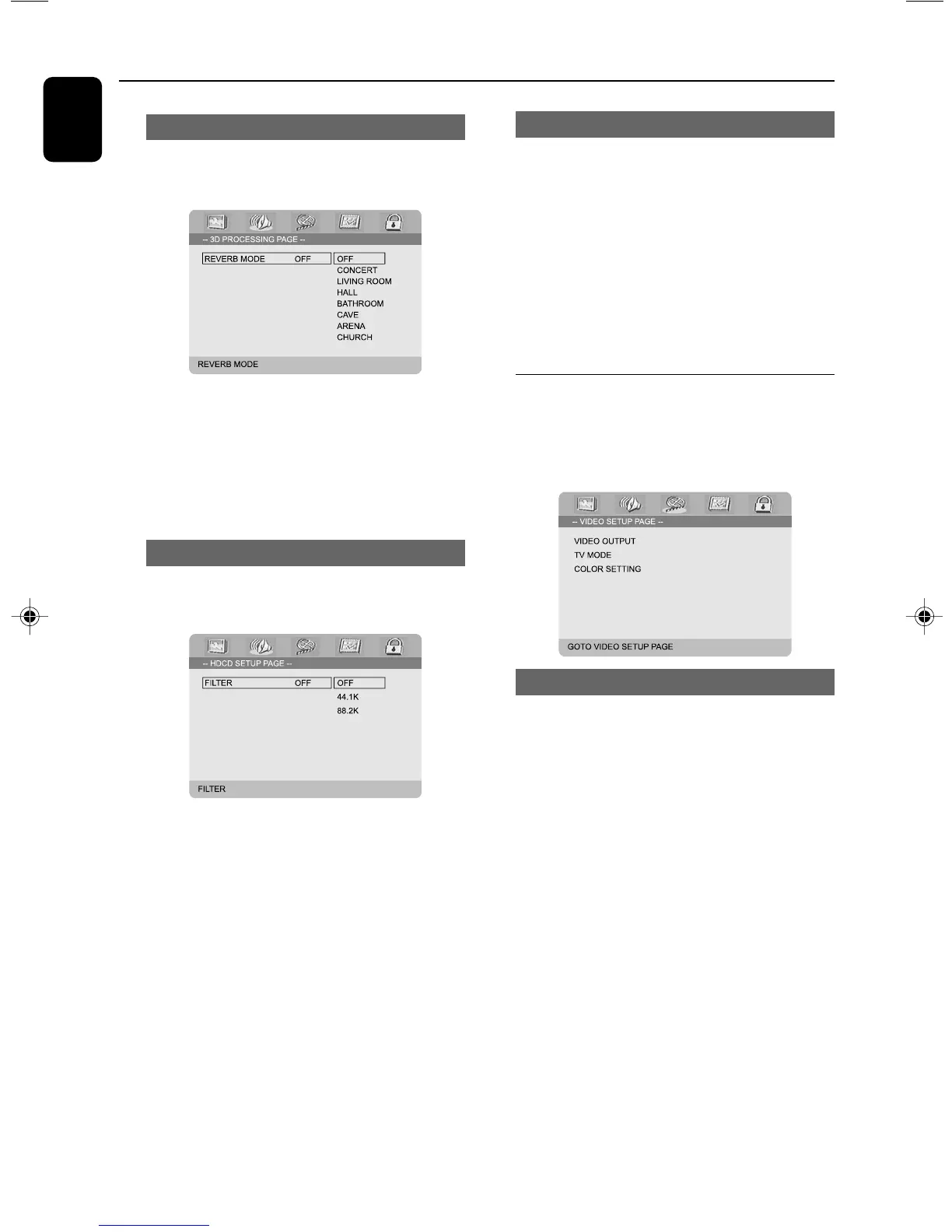 “VIDEO OUTPUT”, “TV MODE” and “COLOR