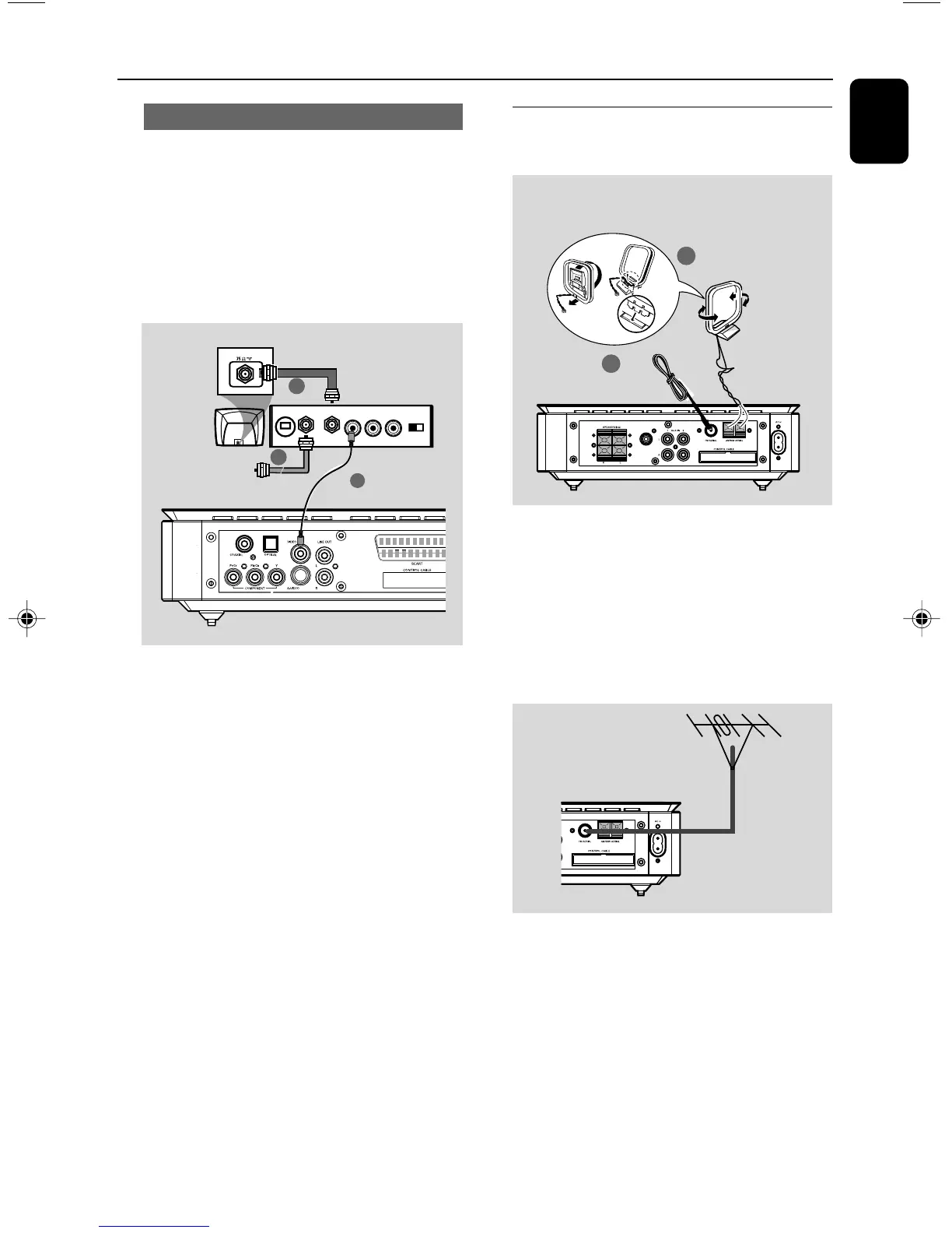 connect ANTENNA OUT or TO TV jack on the