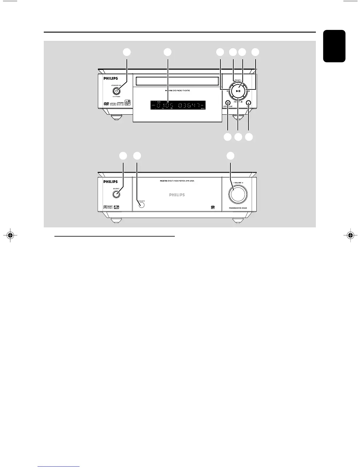 – in tuner mode, selects a preset radio station