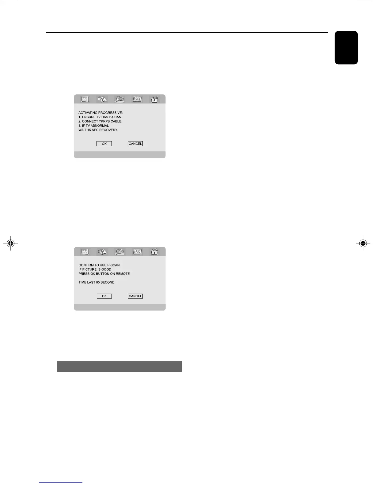 7 Select "TV MODE" to "P-SCAN", then OK to